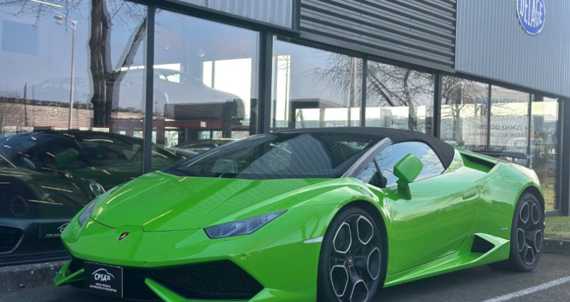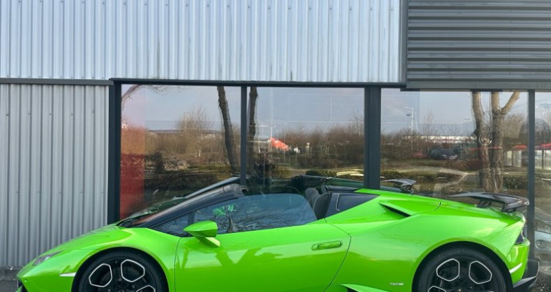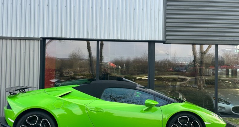 LAMBORGHINI HURACAN SPYDER LP 610-4 - verde mantis - PPF face avant Garantie : 12 mois L’exemplaire présenté ici se trouve dans une teinte verde mantis, dont la face avant est protégée par un film transparent. Son suivi d’entretien a été réalisé dans les ateliers LAMBORGHINI, carnet disponible sur demande : -2017 : 4 649 kms -2018 : 10 246 kms -2019 : 14 685 kms -2020 : 16 709 kms -2021 : 18 350 kms -2022 : 23 210 kms -2023 : 35 886 kms -2025 : 44 600 kms La housse et le maintien de charge sont fournis avec cet exemplaire. OPTIONS ET EQUIPEMENTS : Peinture verde mantis Capote noire Système de levage de l’essieu avant (LIFT) Sièges à réglages électriques et chauffants avec surpiqûres vertes Ecusson LAMBORGHINI sur appuie tête Volant en cuir multifonctions Caméra de recul Aide au stationnement à l’arrière et à l’avant Ecusson LAMBORGHINI éclairé lors de l’ouverture des portes Régulateur de vitesse Jantes 20’’ GIANO Freins céramiques Etriers de freins noirs Bluetooth GPS … Prix : 209 990€ Pour plus d’informations, nous contacter.