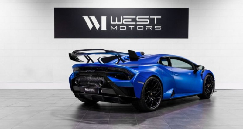 Lamborghini Huracan STO V10 5.2 640 Ch Immatriculation Française, pas de malus Kilométrage : 13 505 Km M.E.C : 21/10/2021 Options : - Blu Aegeus Mat avec pack contrastant en Noir - Jantes 20’’ forgées en Noir Mat - Pack carbone extérieur en Mat - Pare-chocs avant en carbone mat - Ailettes en carbone mat sur les ailes avant - Rétroviseurs en carbone mat - Diffuseur arrière en carbone mat - Ailerons en carbone mat - Center Lock en Noir - Étriers de freins Noir - Caméra de recul - Sur-élévateur avant Lift - Rétroviseurs électrochromes - Régulateur de vitesse - Pack sticker complet - Sellerie tout alcantara Noire avec Trim Rouge et surpiqures Bleues - Sièges sport en carbone - Pack carbone intérieur finition mate - Panneaux de portes en carbone mat Ad Personam - Casquette de compteur en carbone mat et alcantara avec surpiqures bleues Ad Personam - Tapis de sol en carbone mat - Volant en alcantara avec marquage à midi en Bleu et surpiqures bleues Ad Personam - Ciel de toit en alcantara - Flap de démarrage peint en Blu Argeus Mat Ad Personam - Lamborghini Telemetry - Radio numérique DAB - Apple CarPlay Prix de vente : 363 490 € Offre de location en crédit ballon possible à partir de 2?711,46 € / mois pendant 48 mois avec 70 000 € d’apport (plus d’informations sur demande) Véhicule garantie 12 mois valable dans le réseau Lamborghini en France et en Europe. Plus de photos sur demande. - - - - - - - - - - - - - - INFORMATIONS - - - - - - - - - - - - - WEST MOTORS - LYON Achat et vente de véhicules sports et premium Nous vous proposons un large choix de véhicules haut de gamme, que nous prenons soin de faire contrôler rigoureusement. L’équipe West Motors met à votre disposition tout son savoir-faire pour vous satisfaire. Nous vous proposons différentes solutions de financement (crédit classique, leasing, LOA, crédit ballon…). De la reprise de votre ancien véhicule au financement de votre nouveau projet, nous nous occupons de tout. Pour chaque véhicule, nous vous garantissons le kilométrage et sommes en mesure de vous fournir un historique complet et transparent. Nous vous offrons également différentes possibilités d'extension de garantie de 6, 12 ou 24 mois mclaren (garantie valable chez tous les concessionnaires de la marque en France et partout en Europe). Ayez l’esprit tranquille, nous sommes agréés et habilités par la Préfecture pour établir votre nouvelle carte grise. N’hésitez pas à nous rendre visite ! Notre showroom, situé à seulement 10 min de Lyon, est accessible uniquement sur rendez-vous. Vous n’êtes pas de la région ? Nous pouvons venir vous chercher directement en gare ou à l’aéroport. Autres modèles : 488 f8 f12 812 pista speciale *Annonce non contractuelle, sous réserve d’erreur de notre part* OPTIONS ET ÉQUIPEMENTS : Autres équipements et informations : - - Blu Aegeus Mat avec pack contrastant en Arancio Xanto - Jantes 20’’ forgées en Noir Mat - Pack carbone extérieur en Mat - Pare-chocs avant en carbone mat - Ailettes en carbone mat sur les ailes avant - Rétroviseurs en carbone mat - Diffuseur arrière en carbone mat - Ailerons en carbone mat - Center Lock en Noir - Étriers de freins Noir - Caméra de recul - Sur-élévateur avant Lift - Rétroviseurs électrochromes - Régulateur de vitesse - Pack sticker complet - - Sellerie tout alcantara Noire avec Trim Rouge et surpiqures Bleues - Sièges sport en carbone - Pack carbone intérieur finition mate - Panneaux de portes en carbone mat Ad Personam - Casquette de compteur en carbone mat et alcantara avec surpiqures bleues Ad Personam - Tapis de sol en carbone mat - Volant en alcantara avec marquage à midi en Bleu et surpiqures bleues Ad Personam - Ciel de toit en alcantara - Flap de démarrage peint en Blu Argeus Mat Ad Personam - Lamborghini Telemetry - Radio numérique DAB
