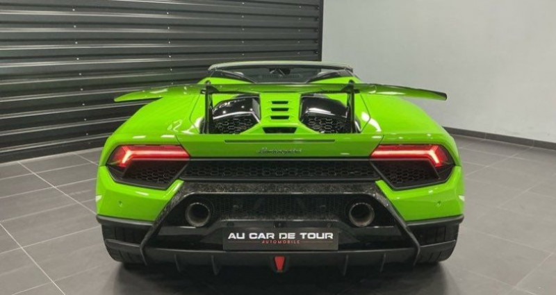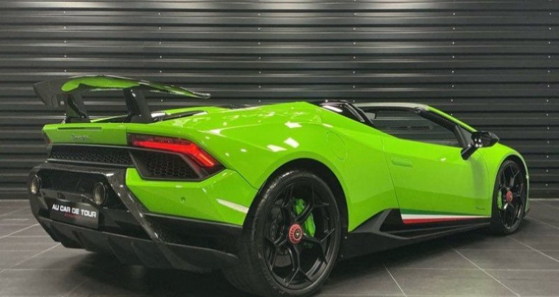 ????? En exclusivité chez AU CAR DE TOUR LAMBORGHINI HURACAN PERFORMANTE SPYDER LP 640-4 x TVA APPARENTE AOÛT 2018 - 28000 kilomètres - 59 cv fiscaux ?? TVA RÉCUPÉRABLE SOIT 266658,33€ HT ??1ère Main ??Origine France ??Historique d'entretien LAMBORGHINI ?? Double de clés ?? EQUIPEMENTS & CONFORT ??Couleur extérieure VERDE MANTIS ??LIFT System ??Pack STYLE ??Sièges bacquets Sport CARBONE ??Sellerie Alcantara ??Surpiqûres inversées ??Phares LED ??Navigation GPS ??Aide au stationnement avant & arrière ??Climatisation automatique ??Régulateur de vitesse ??Rétroviseurs électriques et rabattables ??Jantes forgées 20 ??Allumage des phares automatique ??Détecteur de pluie ??Bluetooth ??Clé Mains libres ??Palettes au volant en CARBONE ??Mode de Conduite STRADA/SPORT/CORSA ??Caméra de recul ??4 Roues motrices ??Audio LAMBORGHINI SENSONUM ??Suspension Magnéto Rhéologique ??Direction Dynamique ??Freins CARBONE CÉRAMIQUE ??Volant Alcantara ??LAMBORGHINI Télémétrie ??CARBONE forgé intérieur et extérieur ??Intérieur finition PERFORMANTE gravure LASER ———— ?? NOS ENGAGEMENTS & SERVICES ?? Reprise possible de votre véhicule ?? Financement sur mesure de 12 à 72 mois ?? Extension de garantie possible jusqu’à 72 mois ———— PRENEZ RENDEZ-VOUS auprès de votre conseillère MELISSA Pour visualiser notre stock tapez AUCARDETOUR dans la barre de recherche LEBONCOIN ou cliquez sur notre boutique