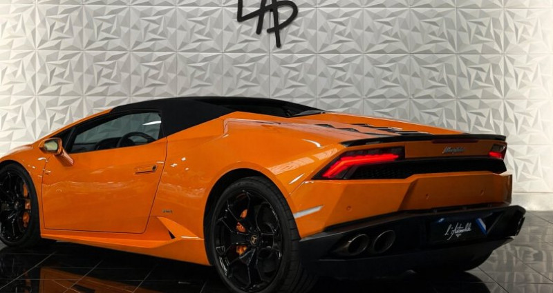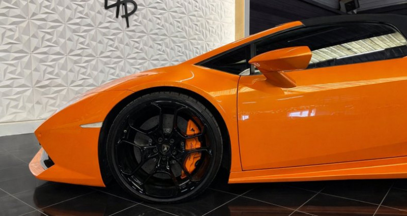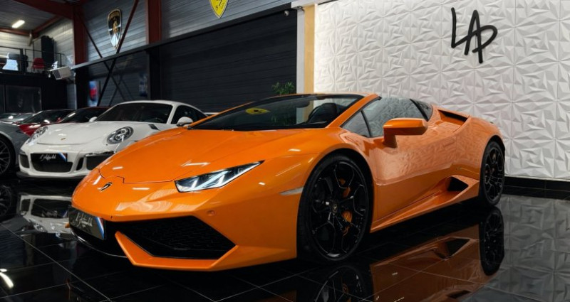 Première Main : Non Nb. Vitesse : 7 Garantie : 12 Mois GARANTIE BASIC MBP PLAFOND 1500€ L'Automobile Paris vous propose cette magnifique Lamborghini Huracan Spyder LP 610-4 v10 atmosphérique 5.2 de 610ch 4 roues motrices, dans une sublime configuration La Lamborghini Huracán Spyder incarne l’essence même de la passion automobile à ciel ouvert. Sous son capot, un moteur V10 atmosphérique rugit avec une puissance brute, offrant des accélérations fulgurantes et une expérience de conduite hors du commun. Son design sculptural, à la fois agressif et raffiné, reflète le savoir-faire italien et l’i ovation technologique propre à Lamborghini. À l’intérieur, luxe et performance se rencontrent dans un cockpit orienté conducteur, où chaque détail est pensé pour maximiser les sensations. POINTS FORTS : Superbe état Disponible immédiatement Malus Payé Garantie 12 Mois extension possible Suivi d'entretien Lamborghini Financement possible EXTERIEUR : ARANCIO métalisé INTERIEUR : CUIR NOIR avec surpiqures Orange OPTIONS & EQUIPEMENTS : Extérieur et châssis : Projecteurs LED Jantes 20 pouces noir brillant Freins en céramique Etriers de freins Orange LIFT Système de levage de l’essieu avant Système d’échappement sport Pack esthétique noir brillant Aide au statio ement avant et arrière radars Rétroviseurs réglables électriquement Surpiqûres contrastées : surpiqûres contrastées de couleur orange pour sièges noirs. Réglage électrique des deux sièges Logo Lamborghini dans les appuis têtes Volant multifonctions avec méplat palettes et mode de conduite STRADA/SPORT/CORSA Sièges chauffants Système Audio Premium Cuir et alcantara étendu sur le tableau de bord Seuils de portes avec inscription Huracan Réception radio numérique DAB Bluetooth streaming Audio et téléphone Panneaux de portes en cuir et alcantara Direction assistée électromécanique Climatisation automatique bi zones Feux LED Visible uniquement sur RDV du Mardi au Samedi de 10h à 12h30 et de 14h30 à 19h. Pour plus d'informations et de photos, nous contacter. Maxim L'Automobile Paris * Des erreurs peuvent s'être glissées dans la description, nous contacter pour plus d'informations.