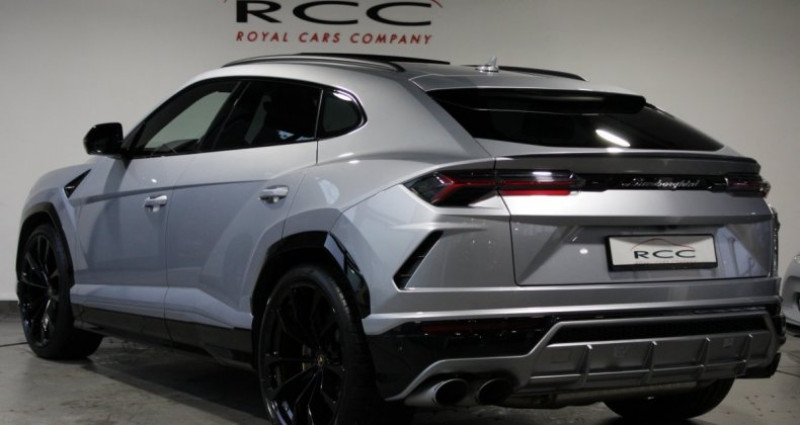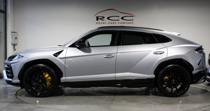 Lamborghini Urus argent, full cuir noir avec surpiqures jaunes, offre de nombreuses options et est en parfait état de première main. Son carnet d'entretien est à jour, 100% réseau Lamborghini, et le malus écologique est inclus dans le prix. Rétroviseur extérieur gauche convexe Inserts en bois noir piano Système de Navigation Eclairage Full-LED adaptative avec AFS et fonction cornering Seuils de portes en aluminium Amplificateur de sonnerie de téléphone