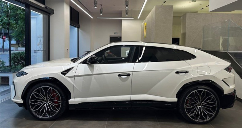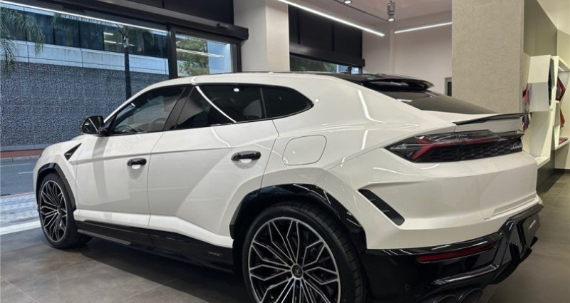 Nb. Vitesse : 8 Nb. Places : 5 Info : 4 roues permanent Echappement : G-Kat Couple : 800Nm EQUIPEMENTS ======================= - Advanced 3D Bang&Olufsen Soud System - Ambient Light Package - Black Matt Exhaust Tailpipes - Calipers Red - Carpets & Piping Color Bicolor (Basic Color/Contrast Color) - Cross-stitching Option - Door handles in Shiny Black - Ad Personam - Embroidered Lamborghini shield on headrest - Floor mats with leather piping and double stitching - Front splitter in body color - Fully Electric Front Seats with Ventilation and Massage - Interior door handle Rosso Efesto Handle - Ad Personam - Lamborghini ANIMA with Off-Road Modes - Lamborghini Connect Vehicle Tracking System - Mirror housings in High Gloss Black - Ad Personam - Multi-function steering wheel with perforated leather inserts, heated - Optional Stitching on Steering Wheels - Park Assistant Package (Intelligent Park Assist & Topview Camera) - Premium air quality system (with air ionizer & aromatization) - Privacy Glass (Rear & Side) with Side Glass Acoustic and Heat Insulated - Rear Seat Heating - Rear Spoiler in High Gloss Black- Ad Personam - Rims Galanthus 23'' shiny black diamond finished - Seat Belts Rosso Alala - Ad Personam - Shiny Black Top with panoramic roof - Ad Personam - Sportivo Leather Interior with Special Trim - Ad Personam - Stitching Option - Style Package Full in High Gloss Black - Sunblinds Package - Wiper blades with integrated nozzles