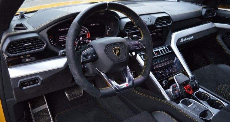 Voiture en excellent état de 1er main Carnet Lamborghini avec historique concession. Entretien effectué et pneus en très bon état. Options: système son b&o caméra 360° sellerie Alcantara noir/jaune decor exterieur noir déco intérieur noir piano encadrement des vitres extérieures en noir étriers de frein brembo® jaune jantes alliage 23'' assistant parking + camera 360° coques de rétro noir brillant sièges avant électriques et chauffants Sièges à memoire tapis de sol ciel de toit alcantara volant cuir/alcantara toit panoramique vitres teinté affichage tête haute Jamais accidentée, non-fumeur, vendue une garantie Visite sur rendez vous, pour + d'infos 06 32 16 38 49