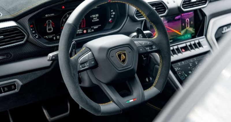 Lamborghini Urus Performante 4.0 V8 666 ch, 64cv, première mise en circulation le 31/05/2024. Extension de Garantie Lamborghini jusqu’à 05/2029. Véhicule français origine Lamborghini Sausheim Malus payé Prix neuf : 405 000€ TVA NON RÉCUPÉRABLE Motorisation : V8 4.0 Bi-Turbo - 666 ch Boîte : Automatique Kilométrage : 1190 km Puissance fiscale : 64 CV Couleur extérieure : Grigio Tele Intérieur : Nero Cosmus Immatriculation : française malus payé ? Équipements & options principales : Système audio Bang & Olufsen Advanced 3D Pack ADAS complet Échappement Akrapovic finition noir mat Toit panoramique Jantes Pelope 23’’ Étriers de freins jaunes Direction sport en Alcantara Sièges avant et arrière chauffants Sièges avant électriques Pack intérieur carbone Pack extérieur carbone Pack Alcantara Vitres acoustiques et athermiques Privacy glass Logo Lamborghini arrière PPF / film de protection Lamborghini Tapis de sol avec liseré cuir et double surpiqûre Éclairage d’ambiance Volant chauffant Essuie-glaces intégrés Garantie constructeur + extension 5 ans Accessoires : Maintien de charge Housse de protection Lamborghini - AR AUTO Spécialiste dans le dépôt-vente entre particuliers. Tous nos véhicules sont sélectionnés avec une grande attention et livré entièrement nettoyé et garantie. Detailing et livraison à domicile possible en supplément. Possibilité d’effectuer vos démarches administratives sur place et de vous récupérer à l'aéroport ou la gare de Mulhouse. FRAIS DE MISE À LA ROUTE : 500€ TTC Joignable uniquement aux horaires d’ouverture.