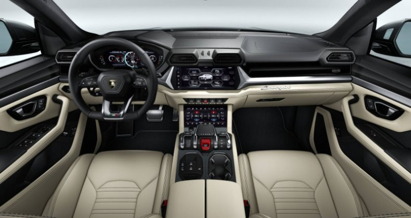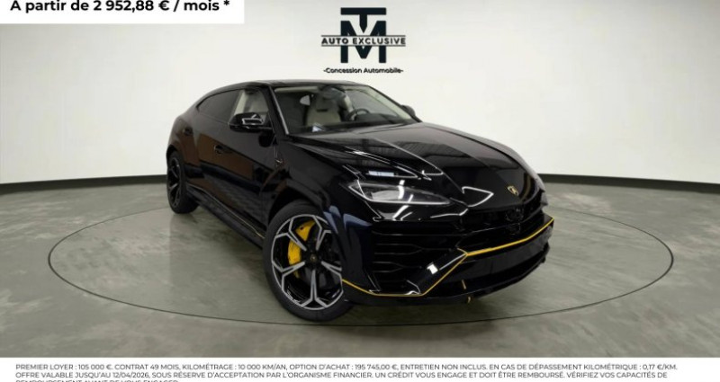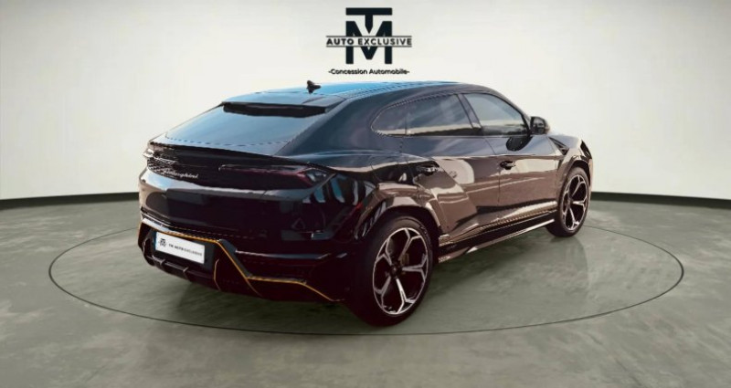 Cylindrée : 3996 cm3 Nb. Vitesse : 8 - 12-ways electric front seats with power adjustment, lumbar support and memory feature - 21 Summer-Tires 285/45 ZR21 in front, 315/40 ZR21 in rear - 3D Maps Navigation system - 4.0-litre V8 twin-turbo - ABS/ESP/Traction control - ACC (EU Data) - Active anti-roll bar control - Active safety features with crash mitigation measures - Adaptive air suspension - Airbag for driver and front passenger with passenger airbag deactivation - Alcantara headliner - Ambient Light Package - Anti-theft alarm system (perimetral, volumetric) and towing protection - Axial and vertical adjustable steering column - Black air vents - Black Anodized Treatment on Aluminium Inserts - Black Matt Exhaust Tailpipes - Bluetooth connection and audio streaming - Body-colored exterior mirror housings - Brushed Steel Exhaust Tailpipes - Caliper Silver - Calipers Yellow - CCB - Carbon Ceramic Brakes with silver caliper - Center armrest in leather - Center Hang-On differential with longitudinal torque vectoring - Central locking system Keyless Entry/Go with SAFELOCK - Classico Leather Interior with Special Trim - Ad Personam - Climatronic in front, and multi-zone controls in the rear - Connect package with connect service and active eSIM - Cruise Control passive - DAB Radio Digital Radio Reception - E-Call with private call - Electrical Trailer Towing - Electric Parking Brake with AVH - Electric tailgate - Electro-chromatic rear view mirrors (int and ext) - Electromechanical Power Steering (EPS) - Embossed Logo on headrest - Embroidered Lamborghini shield on headrest - Exterior mirrors with memory feature, auto-dimming, power-folding/adjustable/ heated - Fresh air intake system (active carbon filter) - Front and rear parking sensors - Fully Electric Front Seats with Ventilation and Massage Includes electric steering wheel column - Garage Door Opener - Hands Free Tailgate - Head-Up Display - Heated front seats - HiFi base - High beam assist - Highway Assistant - HV electric motor (Max e-Power 141 kW) - Inflating kit - Infotainment system with 2 configurable full screen 10,1'' / 8,6'' - Inserts in brushed aluminum - Interface smartphone Lamborghini (Apple carplay and Android auto) - ISOFIX system in front seats - Lamborghini 4WD - Lamborghini 4WS - Lamborghini ANIMA with Off-Road Modes - Lamborghini cockpit: 12,3'' configurable instrument planel - Lamborghini Connect Vehicle Tracking System - Lamborghini logo on dashboard - Lamborghini Protective Film - Lamborghini Sensonum Premium Sound System - Lamborghini smartphone interface (Apple carplay and Android auto) - Matrix Full LED adaptive lighting with AFS and cornering function - Multi functional, adjustable steering wheel - Multifunction steering wheel in leather - Music interface (USB) - Night Vision - Pack Maintenance 5 ans - Panoramic Roof - Parking Assistance Package with Remote Park Assist - Phone Box Amplifier - Phone box (wireless charging / connection to vehicle aerial) - Phone box with coupling antenna incl. WLC and external antenna - Piano black wood inserts - Polished grey Exhaust Tailpipes - Power steering - Pre-Crash front (pedestrian and cyclist protection) - Privacy glasses, acustic and heat-insulated glasses - Rear Diffuser in Matt Black - Rear electronic differential with lateral torque vectoring - Rear seat bench/backrest, split folding with center armrest - Rims Nath 22'' diamond finished - Rims Nivale 21'' silver shiny silver 9.5J x 21 front, 10.5J x 21 rear - Rocker Cover in Matt Black - Seat belts Bianco Polar (White) - Seats in Leather - Separate Daytime Running Lights - Side airbag in front, with curtain airbag - Sound system (8 systems, 4 channels) - Stainless Steel loading edge protection - Standard pedestrian protection measures - Stitching Option - Style Package Full in High Gloss Black - TAMBURO: Driving dynamics mode selector (STRADA-SPORT-CORSA-NEVE) and Electric Performance Strategie (HYBRID-RECHARGE-PERFORMANCE) which effects: Engine (ICE & electric), Driving dynamic, Hybrid powertrain, Electronic Stability Control (ESC) and traction control (TCS), Electronically controlled 4WD system - Tempered side and rear glasses - Tyre pressure monitor system - Unicolor Leather - Upper Door trim leather - Upper Leather Package - Urban Road Assistant - Urban Road Assistant - Voice control/recognition - Warranty Extension 5th year - Wheel Arches Black Matt - Wiper blades with integrated nozzles