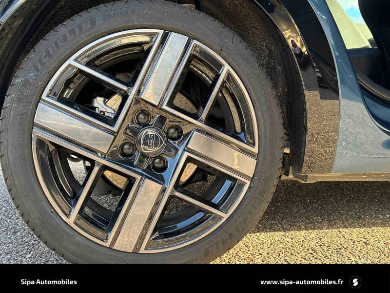 6 airbags (conducteur et passagers AV, latéraux, rideaux, genoux conducteur) / Alerte de collision avant (FCW) / Assistant de maintien dans la voie (LKA) / Assistant de vitesse intelligent (ISA) / Boîte automatique 1 rapports / Câble de recharge Type 2 Mode 3 / Capteur de pression des pneumatiques TPMS / Chargeur embarqué 7 kW (OBC) / Chargeur induction pour smartphone / Contours de vitres, arches de roues et calandre glossy black / Contrôl de traction / Coques de rétroviseurs noires / Détecteur d'angles morts / Détection de fatigue du conducteur / Eclairage d'ambiance 8 couleurs / Ecran central tactile 10,25" avec système d'infodivertissement SALA / Freinage d'urgence autonome reconnaissance piétons & cyclistes / Gestion automatique des feux de croisement et feux de route / Jantes 17" Diamante 205/45 R17 H 88 / Prises USB type C x2 AR / Prise USB type C AV / Projecteurs Full-Led avec signature lumineuse Calice / Rétroviseurs intérieur électrochrome / Sellerie Velours Gris Antracite / Système d'appel d'urgence automatique e-Call / Tableau de bord 10,25" TFT / Vitres AR privatives