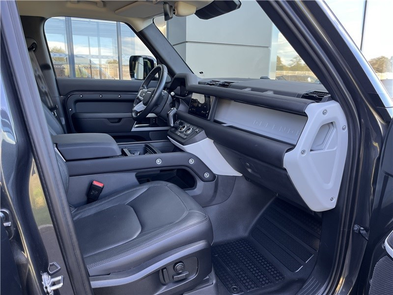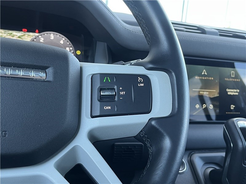 Allumage automatique des phares et essuie-glaces automatiques / Assistance au démarrage en côte, contrôle de stabilité (DSC), antipatinage (ETC) / Assistant de feux de route automatique (AHBA) / Banquette AR rabattable 40/20/40 avec accoudoir central / Cabin Air Purification Plus / Câble recharge domicile - wall box / Caméras panoramiques / Colonne de direction ajustable manuellement / Console centrale avec accoudoir / Contrôle de freinage en courbe (CBC) / Couvre bagages / Démarrage sur route à faible adhérence / Détecteurs d'obstacles à 360° / Détection du trafic en marche AR / Entrée sans clé / Jantes 20" Style 5094, 5 branches, Gloss Sparkle Silver / Lumière d'ambiance intérieure premium / Miroirs de courtoisie éclairés dans les pare-soleil AV / Phares Premium LED avec signature LED / Pneus toutes saisons / Rails de toit noirs / Régulateur de vitesse et limiteur de vitesse / Régulateur de vitesse intelligent avec Lecture des panneaux de signalisation / Rétroviseur intérieur photosensible / Roue de secours 20'' identique aux quatre autres / Sièges AV réglables électriquement en 12x12 directions et mémorisation conducteur et passager AV / Surveillance des angles morts avec correction active / Suspension Adaptive Dynamics / Suspension pneumatique / Système 4 roues motrices permanentes / Système audio Meridian 400 W 11 HP dont caisson de graves / Tableau de bord virtuel avec écran 12,3'' / Terrain Response / Toit couleur carrosserie / Transmission automatique à 8 rapports - Boîte de transfert double gamme / Wade Sensing