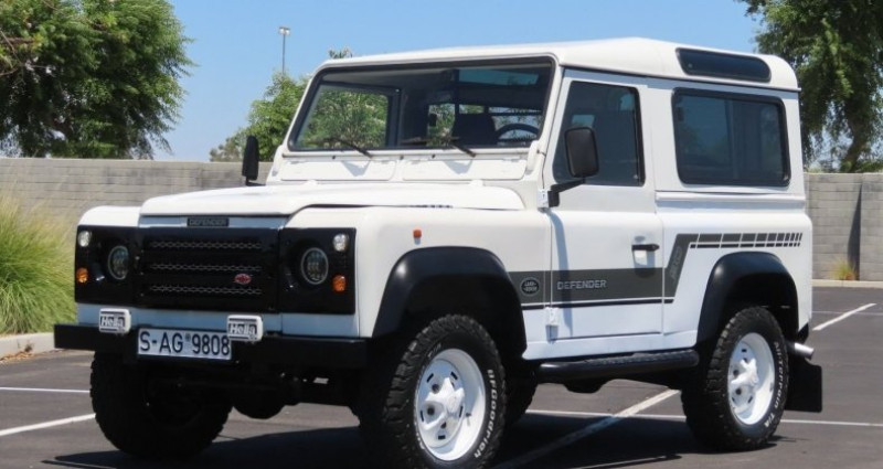 1995 Land Rover Defender 90 • Alpine White • 207, 000 miles • 2.5L Turbo Diesel 4cyl • 5-Speed Manual • Dual Range Transfer Case w Diff Lock • Original Rover Wheels w BFG All Terrain Tires • Rear Bench Seating • Rear Vinyl Wood Flooring • Footsteps • Mud Flaps • Hella Fog Lights • Upgraded LED Headlights • Upgraded Front End Trim & Grille • 2.5-liter TDI 300 Engine • 5 Speed Manual Trans. Provenance : Arizona. Disponibilité : environ 7 semaines, clés en main. 34 500 € tout compris (importation, taxes, procédure d'immatriculation). Annonce publiée le 26/11/2025
