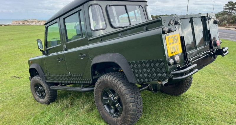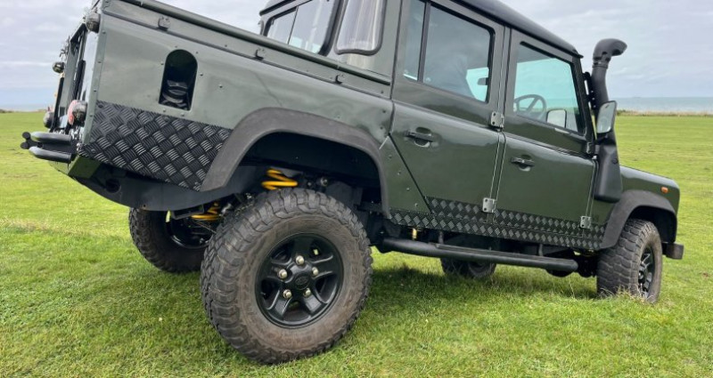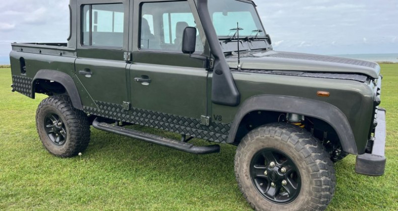 SALLDHMV7BA242713 • UK Registration: C361 UKV • Tonga Green • 3.5L V8 Petrol • Manual transmission • 4-door crew cab pickup • Apple CarPlay touchscreen • Free shipping to USA included ($130K all-in) • Rebuilt by Bespoke Defenders UK • 3.54:1 front and rear axle ratios • Rear Snorkel • Heavy-duty side steps • 285/85 R16 all-terrain tires • Black chequer plate accents • UK-built Land Rover • Vehicle underwent a complete chassis-up rebuild in 2025 • Eligible for import to all 50 US states (25+ years old, exempt from EPA/DOT). Provenance : Oregon. Disponibilité : environ 7 semaines, clés en main. 133 000 € tout compris (importation, taxes, procédure d'immatriculation). Annonce publiée le 26/11/2025