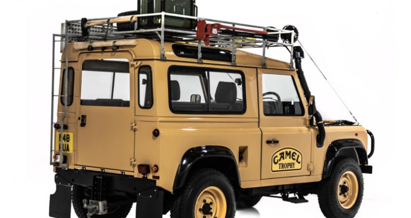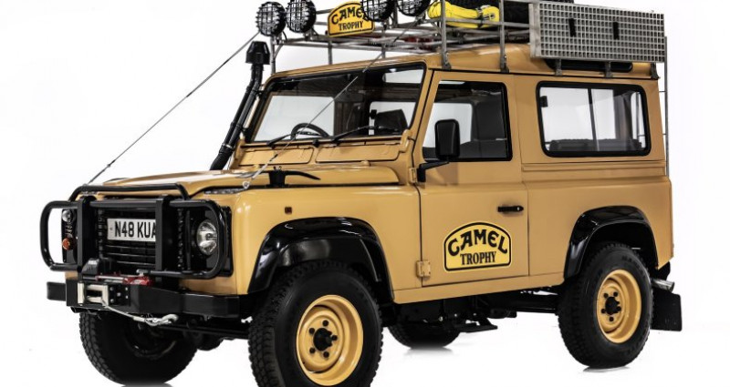 - Marque : Land Rover - Modèle : Defender 90 - Trim : Camel Trophy tribute - Couleur extérieure : Jaune sandglow - Couleur intérieure : Noir - Moteur : 300Tdi Turbo Diesel Injector - Boîte de vitesses : Manuelle 5 vitesses R380 - Transmission : 4x4 - Kilométrage : 23 800 miles - État : Restauration récente sur châssis neuf galvanisé - Travaux récents : Suspension, différentiels, mécanique, etc. - Vendu par : Debsch Motors, spécialiste Defender réputé au Texas, USA. Provenance : Texas. Disponibilité : environ 7 semaines, clés en main. 125 000 € tout compris (importation, taxes, procédure d'immatriculation). Annonce publiée le 31/12/2025