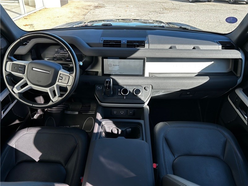 Alarme périmétrique / Alarme volumétrique / Allumage automatique des phares et essuie-glaces automatiques / Assistance au démarrage en côte, contrôle de stabilité (DSC), antipatinage (ETC) / Assistant de feux de route automatique (AHBA) / Badge X-Dynamics / Banquette AR rabattable 40/20/40 avec accoudoir central / Câble recharge domicile - wall box / Caméras panoramiques / Coffre à ouverture latérale avec fermeture assistée (soft-closed) / Colonne de direction ajustable manuellement / Console centrale avec accoudoir / Contrôle de freinage en courbe (CBC) / Contrôle de stabilité anti-retournement (RSC) / Contrôle de vitesse en descente (HDC) / Couvre bagages / Démarrage sur route à faible adhérence / Détecteurs d'obstacles à 360° / Détection du trafic en marche AR / Direction électrique à assistance variable (EPAS) / Entrée sans clé / Fenêtres latérales "Alpines" / Fixations ISOFIX sur les deux sièges AR extérieurs / Freinage d'urgence autonome avec détection des piétons / InControl Remote / Intérieur standard / Jantes 20" Style 5094, 5 branches, Gloss Sparkle Silver / Lumière d'ambiance intérieure premium / Miroirs de courtoisie éclairés dans les pare-soleil AV / Pack online / Pack prises / Pavillon en tissu Morzine Light Oyster / Phares Premium LED avec signature LED / PIVI PRO connecté / Plaques de seuils standards / Pneus toutes saisons / Rails de toit Noirs / Régulateur de vitesse et limiteur de vitesse / Régulateur de vitesse intelligent avec Lecture des panneaux de signalisation / Rétroviseur intérieur photosensible / Roue de secours 20'' identique aux quatre autres / Sans habillage de console centrale / Sélecteur de vitesse en tissu Resist / Sélecteur de vitesse standard / Sièges AV réglables électriquement en 12x12 directions et mémorisation conducteur et passager AV / Signature graphique sur le pillier C avec rangement intérieur / Surveillance des angles morts avec correction active / Suspension Adaptive Dynamics / Suspension pneumatique / Système 4 roues motrices permanentes / Système audio Meridian 400 W 11 HP dont caisson de graves / Système d'ionisation pour un air plus propre dans l'habitacle - Plus / Tableau de bord virtuel avec écran 12,3'' / Terrain Response / Toit couleur carrosserie / Toit standard / Transmission automatique à 8 rapports - Boîte de transfert double gamme / Traverse intérieure finition Light Grey Powder Coat Brushed / Wade Sensing