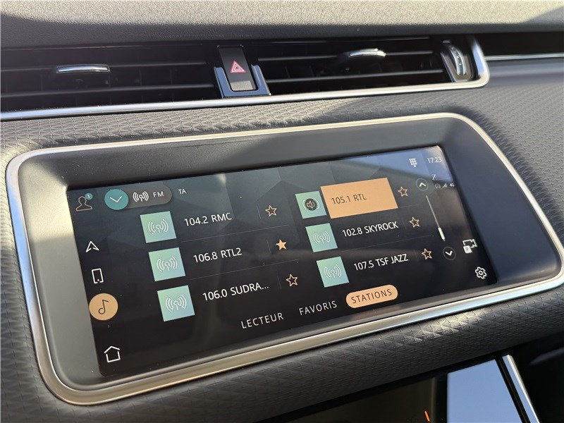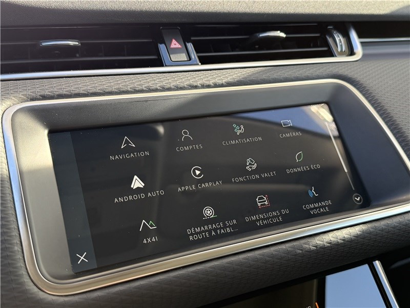 2 USB chargeants à l'AV / Alarme volumétrique / Allumage automatique des phares et essuie-glaces automatiques / Assistance au démarrage en côte, contrôle de stabilité (DSC), frein de stationnement électrique / Assistant de feux de route automatique (AHBA) / Bluetooth connectivity / Clignotants à défilement AR / Climatisation automatique 2 zones avec ouïes de ventilation à l'AR / Contrôle de progression en Tout-Terrain / Détecteurs d'obstacles AV et AR / Ecran tactile Touch Pro 10" / Jantes 18" 5 branches doubles "Style 5075" - Gloss Sparkle Silver / Lumière d'ambiance intérieure / Miroirs de courtoisie éclairés dans les pare-soleil AV / Ouverture et fermeture électrique du hayon / Phares LED avec feux de circulation diurnes (DRL) / Poignées de portes affleurantes / Régulateur de vitesse intelligent avec Lecture des panneaux de signalisation / Réservoir de 67 L / Rétroviseur intérieur photosensible / Sièges conducteur réglables électriquement en 12x12 directions (passager avant 10x10) / Sièges en cuir grainé Ebony avec intérieur Ebony/Ebony / Système d'assistance de maintien de voie avec détection de somnolence / Tapis de sol / Terrain Response 2 avec mode Auto