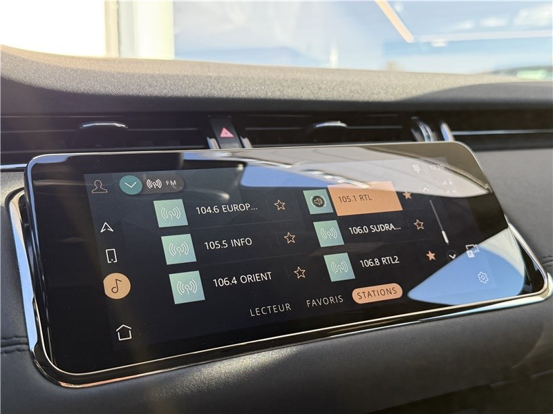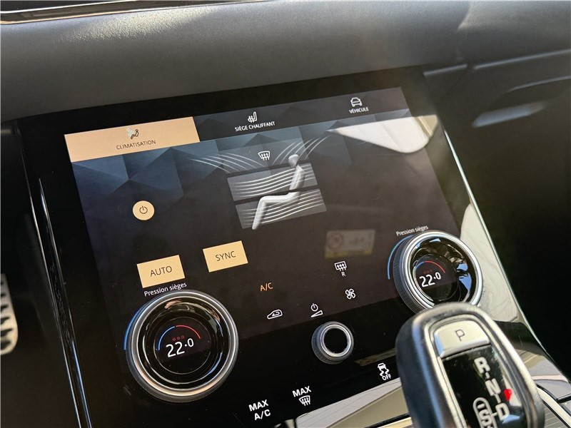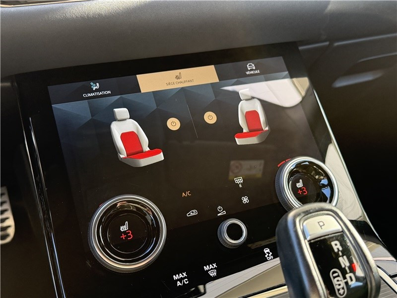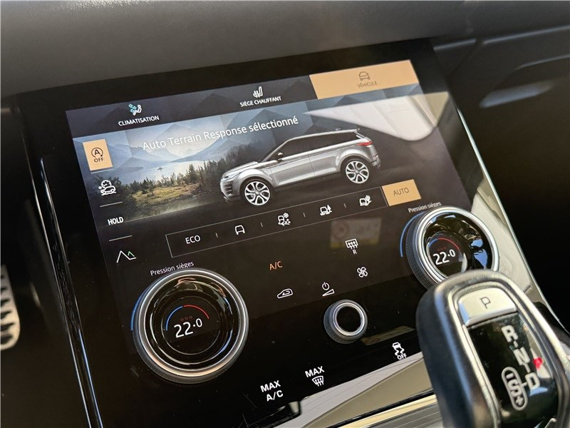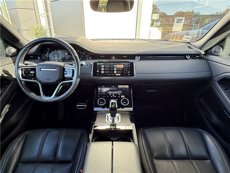 Alarme périmétrique / Alarme volumétrique / Assistance au démarrage en côte, contrôle de stabilité (DSC), frein de stationnement électrique / Assistant de feux de route automatique (AHBA) / Bluetooth connectivity / Clignotants à défilement AV et AR / Climatisation automatique 2 zones avec ouïes de ventilation à l'AR / Contrôle de collision AR / Contrôle de la vigilance du conducteur / Contrôle de progression en Tout-Terrain / Détecteurs d'obstacles AV et AR / Ecran tactile 10" déployable / Lumière d'ambiance intérieure / Ouverture et fermeture électrique du hayon / Pack Design extérieur R-Dynamic / Palettes de changements de vitesses chromées / Phares Premium LED avec feux de circulation diurnes (DRL) et signature LED / Poignées de portes affleurantes / Réservoir de 67 L / Rétroviseur intérieur photosensible / Rétroviseurs extérieurs chauffants photosensibles rabattables électriquement avec éclairage d'approche / Siège conducteur réglables électriquement en 12x12 directions à mémorisation, Siège passager avant réglables électriquement en 10x10 directions, accoudoir central arrière / Sièges en cuir grainé Ebony avec intérieur Ebony/Ebony / Terrain Response 2 avec mode Auto / Toit couleur carrosserie