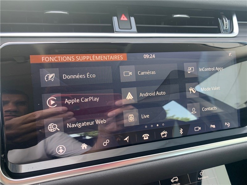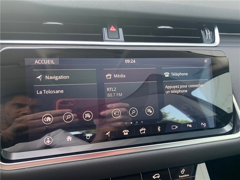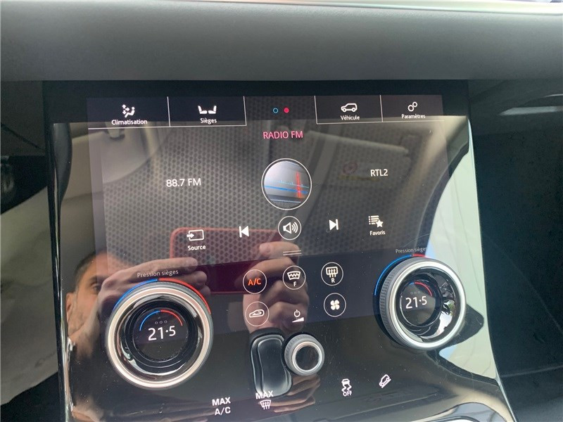 1 prise 12 V dans console centrale, 1 prise 12 V à l'AR, 1 prise 12 V dans le coffre / Aide à la sortie aux places AR / Alarme périmétrique / Alarme volumétrique / Allumage automatique des phares et essuie-glaces automatiques / Assistance au démarrage en côte, contrôle de stabilité (DSC), frein de stationnement électrique / Assistant de feux de route automatique (AHBA) / Banquette AR rabattable 40/20/40 et 3ème appui-tête AR / Bluetooth connectivity / Caméra stéréoscopique avec freinage d'urgence / Contrôle de la vigilance du conducteur / Contrôle de progression en Tout-Terrain / Détecteurs d'obstacles à 360° / Détection du trafic en marche AR / Direction électrique à assistance variable (EPAS) / Efficient Driveline avec Driveline disconnect / Intérieur Gradated Linear Bright Aluminium / Jantes 20" 5 branches doubles "Style 5076" - Gloss sparkle Silver / Kit anticrevaison / Lumière d'ambiance intérieure / Miroirs de courtoisie éclairés dans les pare-soleil AV / Navigation Pro / Ouverture et fermeture électrique du hayon / Pack Connect Pro / Pack Smartphone / Park Assist / Pavillon en tissu Morzine Light Oyster / Phares Premium LED avec feux de circulation diurnes (DRL) et signature LED / Plaques de seuils standard avec Inscription "Range Rover" / Pneus toutes saisons / Poignées de portes affleurantes / Régulateur de vitesse et limiteur de vitesse / Régulateur de vitesse intelligent avec Lecture des panneaux de signalisation / Remote / Réservoir AdBlue Eco réservoir de 12 L / Réservoir de 54 L / Rétroviseur intérieur photosensible / Rétroviseurs extérieurs chauffants photosensibles rabattables électriquement avec éclairage d'approche et mémoire de position / Secure Tracker / Sièges AV réglables électriquement en 14x14 directions, mémorisation du siège conducteur et passager accoudoir central AR / Sièges en cuir grainé Ebony avec intérieur Ebony/Ebony / Suspension passive / Tableau de bord virtuel avec écran TFT 12,3'' / Terrain Response 2 avec mode Auto / Toit couleur carrosserie / Torque Vectoring / Touch Pro Duo