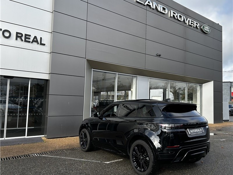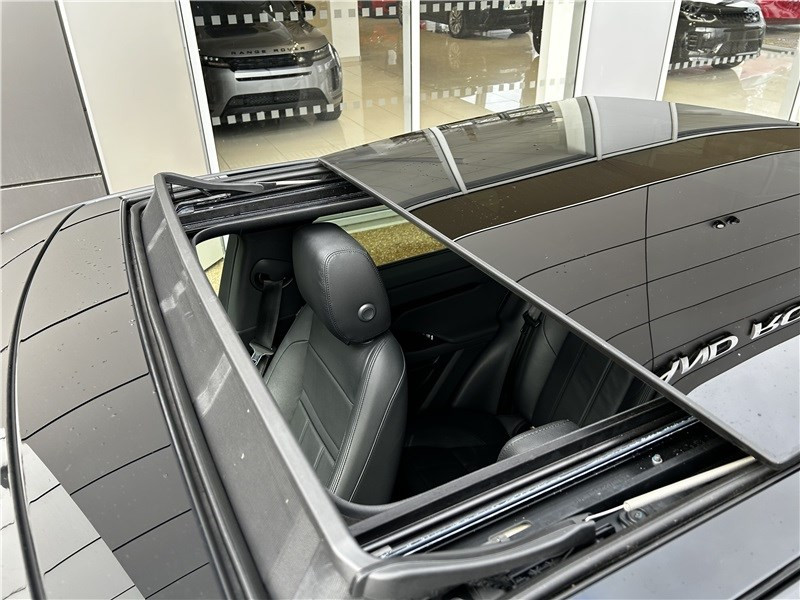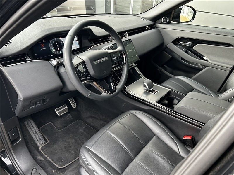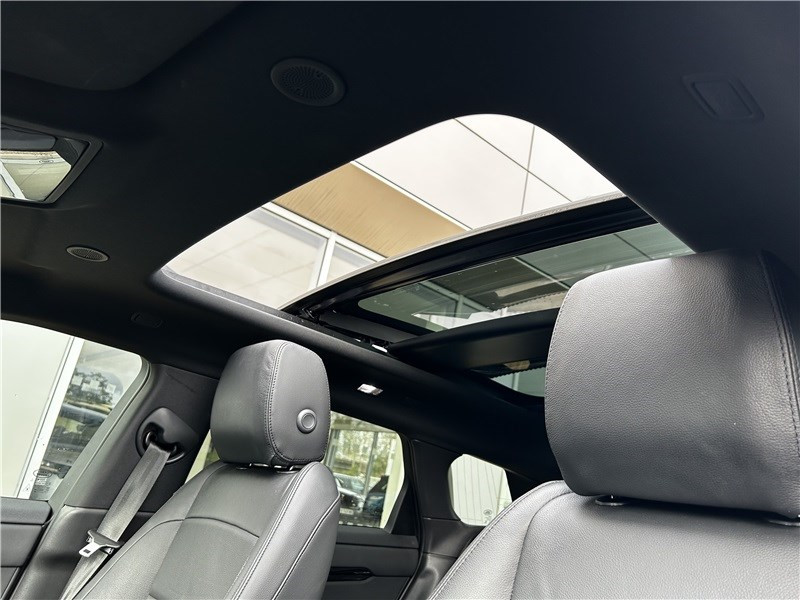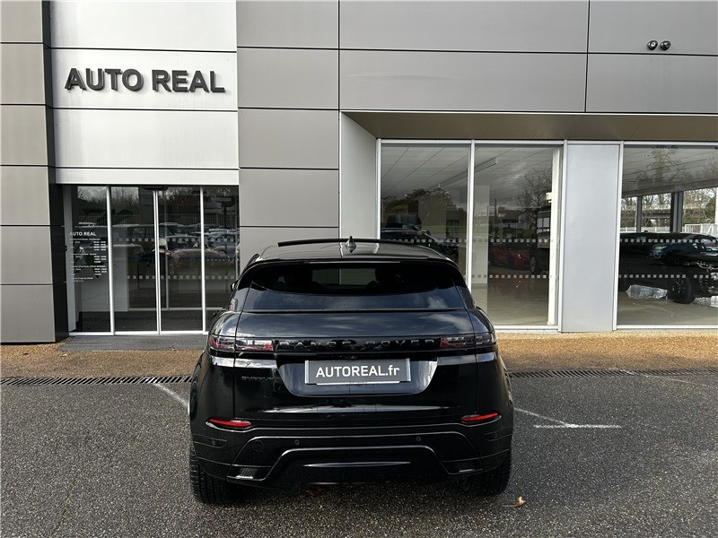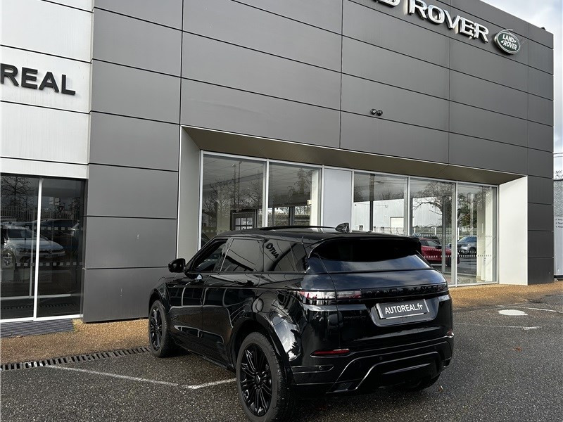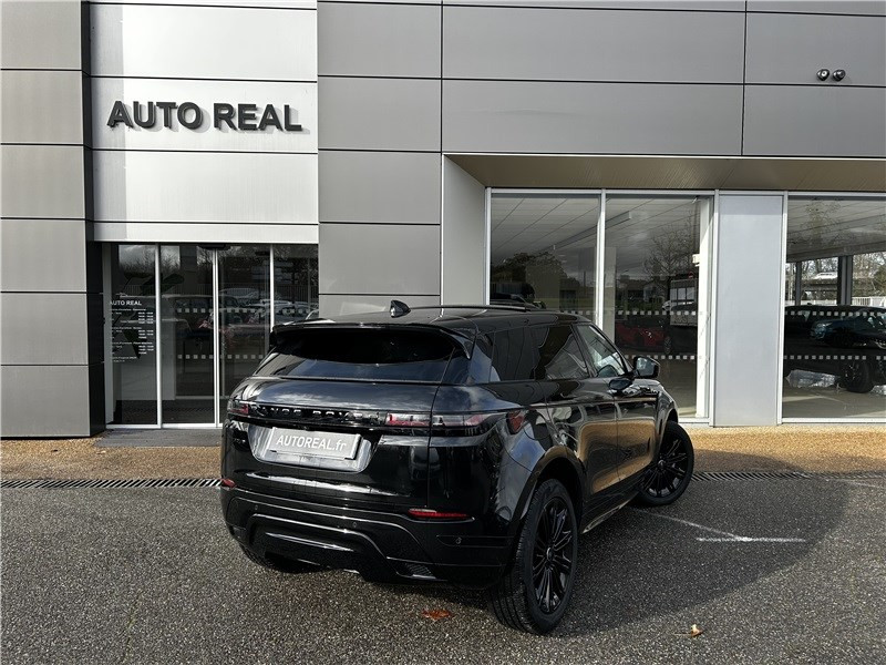 1 prise 12 V dans console centrale, 1 prise 12 V à l'AR, 1 prise 12 V dans le coffre / Alarme volumétrique / Allumage automatique des phares et essuie-glaces automatiques / Assise et dossier des sièges en cuir grainé Ebony / Assistance au démarrage en côte, contrôle de stabilité (DSC), frein de stationnement électrique / Assistant de feux de route automatique (AHBA) / Banquette AR rabattable 40/20/40 et 3ème appui-tête AR / Bluetooth connectivity / Câble recharge domicile - wall box / Câble recharge - wall box / Caméras panoramiques (avec ClearSight Ground View et wade sensing) / Caméra stéréoscopique avec freinage d'urgence / Chargement sans fil / Clignotants à défilement AR / Climatisation automatique 2 zones avec ouïes de ventilation à l'AR / Colonne de direction ajustable manuellement / Contrôle de collision AR / Contrôle de la vigilance du conducteur / Contrôle de Progression en Tout Terrain (ATPC) / Contrôle de Progression en Tout Terrain (ATPC) et Terrain Response 2 / Correcteur d'assiette automatique / Détecteurs d'obstacles AV et AR / Détection de somnolence / Détection du trafic en marche AR / Direction électrique à assistance variable (EPAS) / Efficient Driveline / Inserts décoratifs Black Brushed Aluminium / Limiteur de vitesse intelligent avec Lecture des panneaux de signalisation / Lumière d'ambiance intérieure / Miroirs de courtoisie éclairés dans les pare-soleil AV / Ouverture et fermeture électrique du hayon / Pack Black / Pack Design extérieur Dynamic / Pack online / Palettes de changements de vitesses chromées / Pédalier en métal / Pédalier finition Bright Metal / Phares Premium LED / PIVI PRO connecté / Plaques de seuils en métal / Pneus toutes saisons / Poignées de portes affleurantes / Remote / Rétroviseur intérieur photosensible / Seuil de coffre chromé / Siège conducteur réglable électriquement en 12x12 directions, mémorisation du siège conducteur, / Sièges en cuir grainé Ebony avec intérieur Ebony/Ebony / Suspension passive / Système audio Meridian 400 W, 12 HP, subwoofer 400W / Système d'entrée et de fermeture sans clé / Tableau de bord virtuel avec écran TFT 12,3'' / Tapis de sol / Terrain Response 2 avec mode Auto / Toit couleur carrosserie / Toit standard / Torque Vectoring / Transmission électrique de l'essieu AR / Volant en cuir multifonction avec centre du volant en plastique / Volant standard avec bord Moonlight