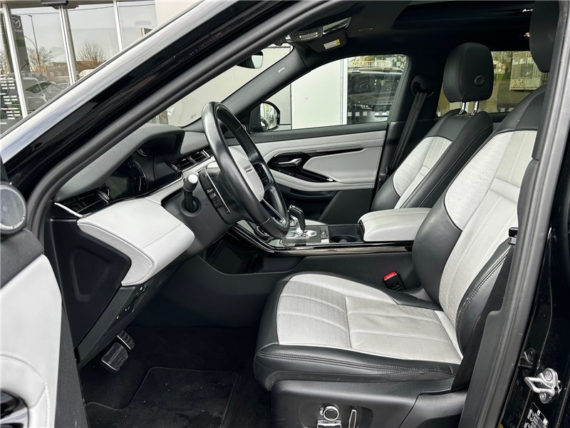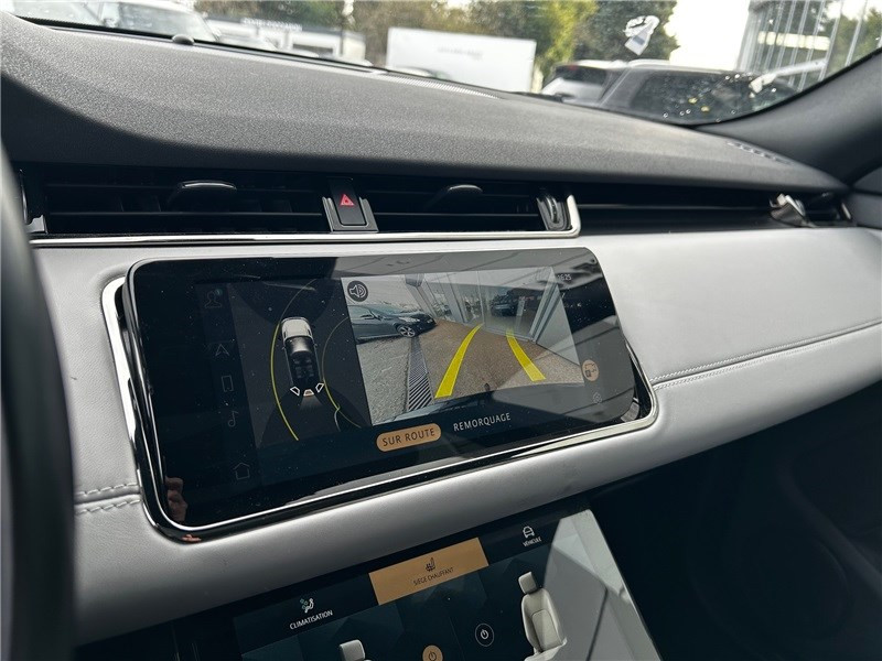 1 prise 12 V dans console centrale, 1 prise 12 V à l'AR, 1 prise 12 V dans le coffre / 1 prise 12 V dans le coffre / Alarme périmétrique / Alarme volumétrique / Allumage automatique des phares et essuie-glaces automatiques / Assise et dossier des sièges en cuir Windsor perforé avec coutures en losanges / Assistance au démarrage en côte, contrôle de stabilité (DSC), frein de stationnement électrique / Banquette AR rabattable 40/20/40 et 3ème appui-tête AR / Bluetooth connectivity / Câble recharge domicile - wall box / Caméra stéréoscopique avec freinage d'urgence / Caméra stéréoscopique avec freinage d'urgence / Clignotants à défilement AV et AR / Climatisation automatique 2 zones avec ouïes de ventilation à l'AR / Colonne de direction ajustable électriquement / Configurable Dynamics / Contrôle de collision AR / Contrôle de la vigilance du conducteur / Contrôle de progression en Tout-Terrain / Correcteur d'assiette automatique / Cuir étendu dans l'habitacle (milieu des portières et milieu du tableau de bord) / Détecteurs d'obstacles AV et AR / Détection de somnolence / Détection du trafic en marche AR / Direction électrique à assistance variable (EPAS) / Intérieur Cuir étendu / Lumière d'ambiance intérieure / Miroirs de courtoisie éclairés dans les pare-soleil AV / Ouverture et fermeture électrique du hayon / Pack Black / Pack Design extérieur R-Dynamic / Pack online / Palettes de changements de vitesses chromées / Pavillon en tissu Morzine Ebony / Pédalier en métal / Phares LED Matrix adaptatifs avec feux de circulation diurnes (DRL), signature LED / PIVI PRO connecté / Plaques de seuils en métal / Pneus toutes saisons / Poignées de portes affleurantes / Régulateur de vitesse intelligent avec Lecture des panneaux de signalisation / Réservoir de 67 L / Rétroviseur intérieur photosensible / Secure Tracker - abonnement 1 an / Seuil de coffre chromé / Sièges avant réglables électriquement en 14x14 directions, mémorisation du siège / Suspension passive / Système audio Meridian 400 W, 12 HP / Système d'entrée et de fermeture sans clé / Tableau de bord analogique / Terrain Response 2 avec mode Auto / Toit couleur carrosserie / Torque Vectoring