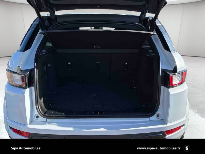 3ème appuie-tête AR / Alarme ultrasonique / Bas de pare-chocs AV/AR White Silver / Cache-bagages / Connectivité Bluetooth avec streaming audio / Coques de rétroviseurs couleur carrosserie / Détecteur d'obstacle AV / Direction à assistance variable électrique / Écran tactile 8'' InControl Touch / Ecrous antivol / Entourage de grille de calandre Atlas / Entrée et fermeture sans clé / Feux de route automatiques / Filtrage de l'air avec fonction de recyclage automatique avec capteur d'humidité et de pollution / Finition Dark Satin Sport Aluminium / Finition de la ceinture de caisse Gloss Black / Frein de stationnement électrique / Grille de calandre, ouïes latérales et baguette de hayon Brunel / InControl Secure / Jantes 19" Gloss Dark Grey - Style 707 / Lumière d'ambiance intérieure / Miroirs de courtoisie éclairés dans les pare-soleil / Ouverture électrique du hayon "mains libres" / Pavillon Morzine Ebony / Phares Xénon avec signature LED / Prise 12V dans le coffre et dans la console centrale / Rétroviseur intérieur photosensible / Sièges en cuir grainé perforé Dynamic / Sièges réglables électriquement en 12x12 directions sans mémoire de position / Système audio Land Rover 8 HP, radio AM/FM - 1x USB / Système de contrôle de la pression des pneus (TPMS) (Tyre Pressure Monitoring System) / Système de navigation InControl Touch sur carte SD et commande vocale / Tapis de sol / Toit couleur contrasté Gris Carpathian / Toit panoramique fixe avec rideau de toit électrique