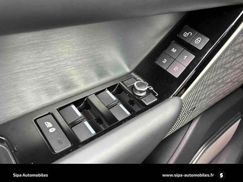 2 USB chargeants AV, 1 prise 12V AV, 1 prise 12V AR, 1 prise 12V dans le coffre / Alarme périmétrique et volumétrique / Allumage automatique des phares et essuie-glaces automatiques / Application smartphone Remote Premium / Clignotants à défilement / Colonne de direction ajustable électriquement / Connectivité Bluetooth et streaming audio / Contrôle de la vigilance du conducteur / Contrôle de vitesse en descente (HDC) / Couvre-bagage / Détecteurs d'obstacles à 360 degrés / Détection de la qualité de l'air et recyclage automatique / Détection du trafic en marche AR / Etriers de freins non peints / Feux de route intelligents et signature LED / Finition Shadow Aluminium / Fixation Isofix pour sièges enfant à l'AR extérieurs / Freinage d'urgence autonome à haute vitesse / Freinage d'urgence autonome avec détection des piétons / InControl Apps / InControl Secure pendant la période de la garantie / Jantes 21'' 10 branches - Style 1033 Satin Dark Grey / Kit de réparation de pneus / Lecture des panneaux de signalisation et limiteur de vitesse intelligent / Lumière d'ambiance intérieure / Miroirs de courtoisie éclairés dans les pare-soleil / Ouverture et fermeture électrique du hayon "mains libres" / Pack Cuir étendu 1 / Pack Design Extérieur R-Dynamic / Palettes de changement de vitesse en métal / Pare-brise feuilleté acoustique / Park Assist / Pavillon Ebony / Pavillon en tissu Morzine / Pédalier Sport en métal / Phares Matrix LED adaptatifs avec signature LED / Plaque de seuil de coffre en métal / Plaques de seuils AV en métal R-Dynamic, AR en plastique / Pneus 265/45 R21 / Pro Services et point d'accès Wi-Fi / Régulateur de vitesse adaptatif avec assistance embouteillage / Rétroviseur intérieur photosensible / Sièges AV chauffants et ventilés, massants, réglables électriquement en 20x20 directions, mémorisation du siège conducteur et du siège passager, accoudoir central AR et banquette AR inclinable électriquement / Sièges en Cuir Windsor perforé / Surveillance des angles morts avec correction active / Système 4 roues motrices permanentes avec Terrain Response avec mode Dynamic / Système audio Meridian Surround 825 W - 17 HP dont caisson de graves / Système de Navigation InControl Touch Pro sur disque dur SSD / Système d'entrée et de fermeture sans clé avec poignées de portières affleurantes et déployables électriquement / Système multimédia InControl Touch Pro Duo - 2 écrans tactiles 10'' superposés sur la console centrales / Tableau de bord virtuel avec écran 12.3" / Terrain Response avec mode Dynamic / Toit couleur carrosserie / Torque Vectoring / Transmission automatique à 8 rapports avec palettes de changements de rapport au volant / Volant en cuir multifonction avec insert chromé
