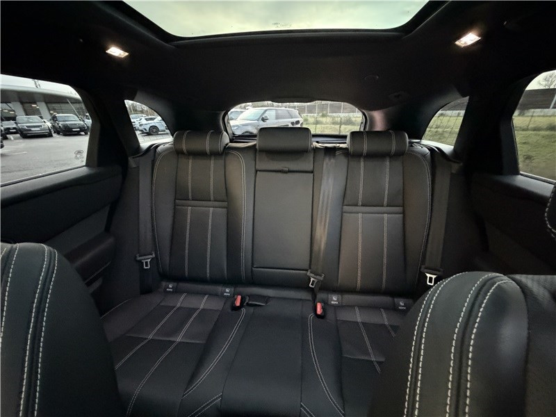 Alarme volumétrique / Allumage automatique des phares et essuie-glaces automatiques / Boîte à gants verrouillable / Câble de recharge Wallbox ou charge rapide DC (Mode 3) / Câble recharge wallbox / Caméras panoramiques 3D / Clignotants à défilement / Clignotants AR LED à défilement / Connectivité Bluetooth et streaming audio / Contrôle de progression en tout-terrain - ATPC / Contrôle de vitesse en descente (HDC) / Couvre-bagage / Détecteur d'obstacle AV/AR / Détection de la qualité de l'air et recyclage automatique / Détection du trafic en marche AR / Direction électrique à assistance variable (EPAS) / Feux de route intelligents et signature LED / Fixation Isofix pour sièges enfant à l'AR extérieurs / Freinage d'urgence autonome avec détection des piétons / Jantes 20'' 10 branches - Style 1032 Satin Dark Grey / Kit de réparation de pneus / Lecture des panneaux de signalisation et limiteur de vitesse intelligent / Navigation connectée / Ouverture et fermeture électrique du hayon / Pack Design Black R-Dynamic / Pack Design Extérieur R-Dynamic / Pack Extérieur R-Dynamic / Palettes de changements de vitesses satin chromé / Pare-brise feuilleté acoustique / Pavillon Ebony en tissu Morzine / Pédalier Sport en métal / Plaque de seuil de coffre en métal / Plaques de seuils AV en métal R-Dynamic, AR en plastique / Recharge en courant alternatif (AC) / Rétroviseur intérieur photosensible / Sièges réglables électriquement en 14x14 directions à l'AV, mémorisation du siège conducteur, / Surveillance des angles morts avec correction active / Système 4 roues motrices permanentes / Système audio Meridian Surround 750 W - 17 HP dont caisson de graves / Tableau de bord virtuel avec écran 12.3" / Terrain Response avec mode Dynamic / Transmission automatique à 8 rapports avec palettes de changements de rapport au volant en satin / Wade Sensing