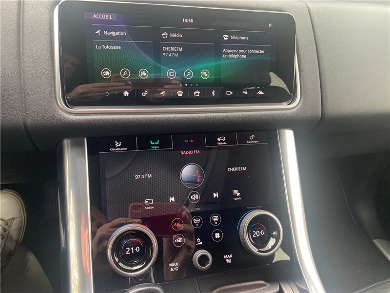 Adaptive Dynamics / Air conditionné automatique à réglage 2 zones / Alarme volumétrique et périmétrique / Alerte de franchissement de ligne involontaire avec freinage d'urgence autonome / Application smartphone Remote Premium / Audio Meridian Surround 825 Watts 18 HP - Subwoofer - 825 Watts - Prise auxiliaire pour lecteur MP3 - Prises USB / Boîte de transfert double gamme / Boîte de vitesses automatique 8 rapports CommandShift 2 / Colonne de direction ajustable électriquement / Couvre-bagage / Détecteur d'obstacle AV/AR / Détecteur d'obstacle AV et AR / Différentiel AR électronique avec Torque Vecto / Ecrous antivol / Etriers de freins anodisés gris avec script "Land Rover" / Finition Micro Mesh Aluminium / InControl Apps / InControl Protect pendant la durée de la garantie / InControl Secure pendant la période de la garantie / Kit anti-crevaison / Lumière d'ambiance / Pack Smartphone / Pare-brise chauffant / Pare-soleil simple avec éclairage de courtoisie / Pro Services et point d'accès Wi-Fi / Rétroviseur intérieur photosensible / Rétroviseurs extérieurs rabattables électriquement, chauffants, avec mémoire de position et lampes d'approche / Seuils de portes AV chromés avec marquage Range Rover / Sièges en Cuir Windsor perforé, Sièges AV réglables électriquement en 16x16 directions avec mémorisation / Suspension pneumatique / Système d'arrêt/démarrage intelligent (Stop/Start) / Système multimédia InControl Touch Pro avec deux écrans tactile 10' / Tableau de bord virtuel avec affichage 12.3" / Terrain Response 2 avec programme Dynamic / Terrain Response Configurable / Toit couleur carrosserie
