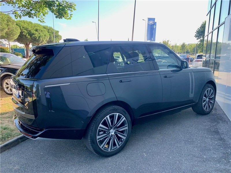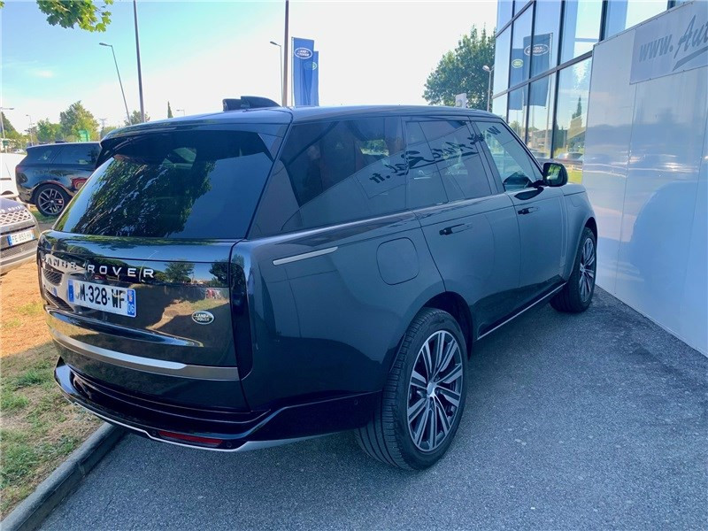 Alarme volumétrique / Allumage automatique des phares et essuie-glaces automatiques / Badges extérieurs (standard) / Blocage de différentiel AR actif avec Torque Vectoring / Boîte de transfert double gamme / Boîte de vitesses automatique à 8 rapports avec palettes au volant / Câble de recharge publique (mode 3) / Caméras panoramiques 3D (avec ClearSight Ground View et wade sensing) / Chargeur à induction avec amplificateur de signal / Clignotants à défilement / Colonne de direction ajustable électriquement / Contrôle de la vigilance du conducteur avec assistance active / Contrôle des angles morts avec assistance active / Contrôle qualité de l'air / Détecteurs d'obstacles AV et AR / Détection du trafic en marche AR / Ecran central 13,1'' associéà tableau de bord virtuel de 13,7 / Entrée sans clé / Fermeture assistée des portières / Feux de route automatiques (AHBA) / Hotspot Wi-Fi avec forfait de données intégré (1 an) / Intérieur Cuir étendu / Intérieur cuir Semi-Aniline perforé Ebony/Ebony / Lecture des panneaux de signalisation avec régulateur de vitesse intelligent / Lumière d'ambiance intérieure / Natural Brown Walnut / Ouverture et fermeture électrique du hayon avec fonction "mains libres" / Pack Extérieur Nickel Atlas / Pare-brise chauffant / Pare-soleil doubles / Park Assist / Pédalier en métal / Phares Digital LED avec signature LED et projection d'images / PIVI PRO connecté / Poignées de porte escamotables / Quatre roues directrices / Régulateur de vitesse adaptatif ACC avec assistance de maintien de voie / Rétroviseur intérieur à visibilité optimisée (ClearSight) / Rétroviseurs extérieurs photosensibles rabattables électriquement, chauffants et à mémoire avec lampes d'approche / Seuils des portes chromés avec marquage Range Rover / Sièges AV chauffants et ventilés réglables électriquement en 20x20 directions, dont appuie tête réglable electriquement en 4x4 directions, mémorisation conducteur et passager, Banquette AR chauffante et ventilée inclinable éléctriquement et rabattable 60:40 / Surveillance des angles morts avec correction active / Suspension pneumatique active (Adaptive Dynamics) et barre anti roulis active (Dynamic Response Pro) / Système audio Meridian Surround 800 W 18 HP - Subwoofer - 800 Watts - Prise auxiliaire pour lecteur MP3 - Prises USB / Système de protection des passagers en cas de collisions arrière / Système de purification de l'air Premium avec filtre / Tapis de sol avant / arrière / Vitrage des vitres avant feuilleté et arrière standard / Volant cuir softgrain