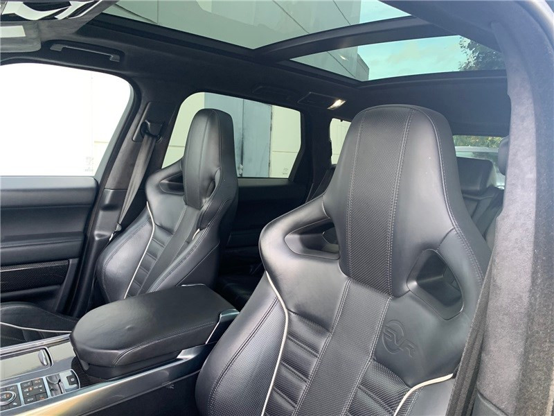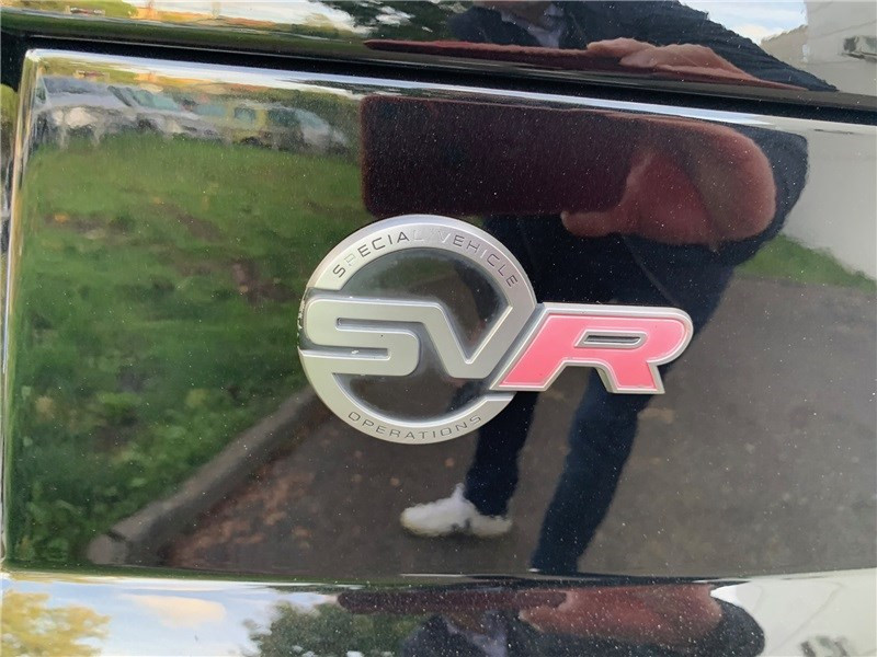 Adaptive Dynamics / Alarme ultrasonique / Assises et dossiers des sièges en Cuir Oxford perforé avec siglage SVR / Boîte de transfert avec gamme de rapports courts / longs / Boîte de vitesses automatique 8 rapports CommandShift 2 / Colonne de direction réglable électriquement / Contrôle d'adhérence en descente (HDC) / Contrôle de freinage en courbe (CBC) / Détecteur d'obstacle AV / Dynamic Programme / Dynamic Reponse et Torque Vectoring / Ecrous antivol / EPAS - Direction assistée électrique asservie à la vitesse / Jantes alliage 21" 5 branches doubles SVR - Style 517 / Ouverture et fermeture électrique du hayon "mains libres" / Pare-brise chauffant / Pare-soleil simple avec éclairage de courtoisie / Phares Xénon avec signature LED - Lave-phares / Quadruple sortie d'échappement avec échappement actif / Rétroviseur intérieur photosensible / Sièges Sport SVR avec appui-tête intégrés, Mémoire de position conducteur et passager - Réglages / Système audio Meridian avec son Surround 18 HP - Subwoofer - 825 Watts - aux & 1 port USB / Système Bluetooth d'intégration du téléphone personnel / Terrain ResponseTM 2 Auto