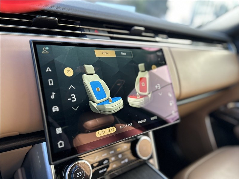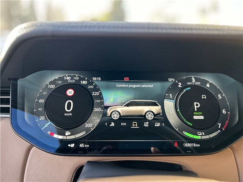 Alarme volumétrique / Allumage automatique des phares et essuie-glaces automatiques / Blocage de différentiel AR actif avec Torque Vectoring / Boîte de transfert double gamme / Boîte de vitesses automatique à 8 rapports avec palettes au volant / Câble de recharge publique (mode 3) / Caméras panoramiques 3D (avec ClearSight Ground View et wade sensing) / Chargeur à induction avec amplificateur de signal / Clignotants à défilement / Colonne de direction ajustable électriquement / Commandes Noble Chrome / Console centrale avec accoudoir / Contrôle de la vigilance du conducteur avec assistance active / Contrôle des angles morts avec assistance active / Contrôle qualité de l'air / Couvre bagages / Détecteurs d'obstacles AV et AR / Détection du trafic en marche AR / Ecran central 13,1'' associéà tableau de bord virtuel de 13,7 / Entrée sans clé / Fermeture assistée des portières / Feux de route automatiques (AHBA) / Filet de partition de coffre / Hotspot Wi-Fi avec forfait de données intégré (1 an) / Intérieur Cuir étendu / Kit anticrevaison / Lecture des panneaux de signalisation avec régulateur de vitesse intelligent / Lumière d'ambiance intérieure / Omission du système multimédia AR / Ouverture et fermeture électrique du hayon avec fonction "mains libres" / Pare-brise chauffant / Pare-soleil doubles / Park Assist / Pédalier en métal / Phares Digital LED avec signature LED et projection d'images / PIVI PRO connecté / Poignées de porte escamotables / Quatre roues directrices / Régulateur de vitesse adaptatif ACC avec assistance de maintien de voie / Remote / Rétroviseur intérieur à visibilité optimisée (ClearSight) / Seuils des portes chromés avec marquage Range Rover / Surveillance des angles morts avec correction active / Suspension pneumatique active (Adaptive Dynamics) / Système audio Meridian Surround 800 W / Système de purification de l'air Premium avec filtre / Tapis de sol AV / AR / Tapis de sol Ebony / Toit couleur carrosserie / Volant cuir softgrain