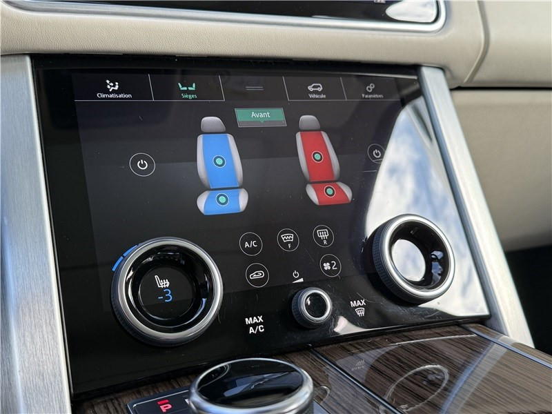Boîte de vitesses automatique à 8 rapports avec commande rotative / Colonne de direction ajustable électriquement / Contrôle de la vigilance du conducteur / Détection du trafic en marche AR / Eclairage d'ambiance configurable / Fermeture assistée des portières / Frein de stationnement électrique (EPB) intégréà l?étrier / Jantes 21'' Light Silver Diamond Turned Style 7001 / Lecture des panneaux de signalisation avec régulateur de vitesse intelligent / Ouïes latérales et inserts couleur carrosserie Satin / Ouverture et fermeture électrique du hayon "mains libres" en 2 parties / Pack Drive Pro / Pare-brise chauffant / Pare-soleil doubles / Pavillon Suedine / Phares Matrix LED adaptatifs avec signature LED / Rétroviseurs extérieurs photosensibles / Sièges en Cuir Windsor perforé / Suspension pneumatique à gestion électronique / Système audio Meridian Surround 825 Watts / Tapis de sol AV et AR / Terrain Response 2 avec mode Dynamic / Vitrage AR fumé / Volant chauffant