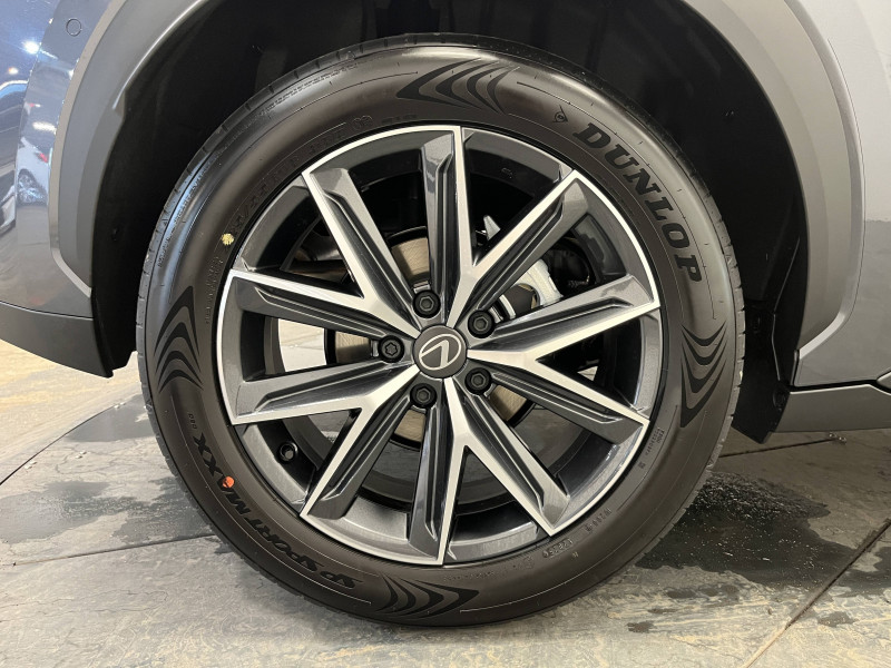 4x Ports USB (2x AV et 2x AR) / Accès et sortie facilités (siège conducteur avec fonction recul/retour) / Airbag pour les genoux (conducteur) / Antenne de toit type aileron de requin / Appuie-tête AR à 2 réglages manuels / Appuie-têtes AV à 2 réglages manuels / Avertisseur sonore piétons (AVAS) / Boîte automatisée a variation continu / Bouton de désactivation de l'airbag (passager AV) / Broderie hachurée cuivre sur le dossier, l'assise et les rembourrages / Calandre trapézoïde avec garniture argentée / Capteurs de stationnement AV et AR et AR intelligents (ICS) / Cléélectronique (Smart Key) / Clé numérique (via Lexus Link+) / Clignotants AV à LED / Climatisation automatique bi-zone avec contrôle à distance, recirculation automatique et purificateur d'air / Climatisation électronique avec technologie nanoe X / Cockpit digital de 12,3'' personnalisable / Commandes montées sur le volant, système audio/affichage/téléphone/reconnaissance vocale/DRCC/LTA / Contrôle de stabilité anti-roulis pour remorque / Coques de rétroviseurs extérieurs noires / Couvre-coffre, rabattable manuellement / Eclairage d'ambiance multicolore (64 couleurs) / ESP (direction assistée électriquement) / Essuie-glace AV à détecteur de pluie / Feux AV adaptatifs (AHS) avec réglage automatique de la hauteur du faisceau, éclairage d'intersection et feux antibrouillard AV à LED / Feux de détresse automatiques (FHL) / Feux de stop actifs / Fixation i-Size, sièges AR gauche et droit / Hayon à ouverture et fermeture électrique avec fonction de mémorisation de la hauteur / Jantes en alliage 18" gris foncé avec finition usinée avec pneumatiques 225/55 R18 / Kit de réparation des pneus / Lave caméra / Lexus Safety System+ 3 : Assistance à la conduite proactive (PDA) Lecture automatique des panneaux de circulation (RSA), Régulateur de vitesse dynamique (DRCC) avec rédution de la vitesse en courbe, Système de maintien dans la file de circulation (LTA), Système de sécurité pré-collision (PCS) avec détection diurne et nocturne des piétons et cyclistes, des motos (de jour uniquement), détection des intersections (ITA), correction active de trajectoire (ESA) et système de freinage d'urgence (EDSS) / Mémorisation de la position de conduite (siège, rétroviseurs extérieurs) - 3 profils d'utilisateur / Mode EV (100 % électrique) / Moniteur d'angle mort (BSM) avec avertisseur de circulation AR intelligent (RCTAB) / Moniteur de surveillance du conducteur (Driver Monitor) / Moulures de cadres de vitres latérales en acier inoxydable argenté / Moulures de portières noires / Pare-chocs AR avec échappement dissimulé / Pare-chocs AV et AR avec garniture argentée / Peinture bi-ton avec rétroviseurs extérieurs et toit peints en noir / Plaques de seuils de portes AV en résine avec insert métallique, avec inscription LEXUS / Pommeau de levier de vitesse gainé de cuir / Porte-gobelets AV / Prétensionneurs de ceintures de sécuritéà l'AV et aux places AR gauche et droite / Prise de courant 12 V à l' AV / Prise de courant 12 V dans le coffre / Rappel visuel et sonore pour ceintures de sécurité, sièges AV et AR / Rétroviseur intérieur électrochrome / Rétroviseurs extérieurs avec fonction recul et fonction électrochromatique (côté conducteur) / Safe Exit Assist (SEA)- assistant de sortie du véhicule / Sélecteur de mode de conduite Eco/Normal / Siège passager AV à 6 réglages manuels / Support lombaire à 2 réglages, siège conducteur / Surpiqûres Tatami double ligne cuivre, avec double couture sur les rembourrages / Surpiqûres Tatami simple ligne, avec double couture sur les rembourrages / Système antivol avec antidémarrage / alarme sonore / capteur d'intrusion / Système audio Premium à 6 HP / Système d'appel d'urgence (eCall) / Système de contrôle actif du son (ANC) / Système de contrôle de la pression de gonflage des pneumatiques (TPWS) avec localisation automatique / Système de freinage, stabilité, direction et d'antipatinage : ABS, BAS, EBD, ECB-R, EPB, EPS,TRC,VSC / Système de surveillance du conducteur (Driver Monitor) / Système d'ouverture sans clé (Smart Entry) / Système multimédia Lexus Link Connect : Ecran tactile 9,8", Intégration smartphone (Apple CarPlay sans fil et Android Auto), Services connectés Lexus Link+, Système de navigation basé sur le Cloud (pendant 4 ans) / Tableau de bord garni d'Ultrasuede / Vitrage anti UV et isolant / Vitres latérales AR et lunette AR surteintées / Vitres latérales AV à traitement acoustique / Volant à 3 branches, revêtement en cuir / Volant chauffant