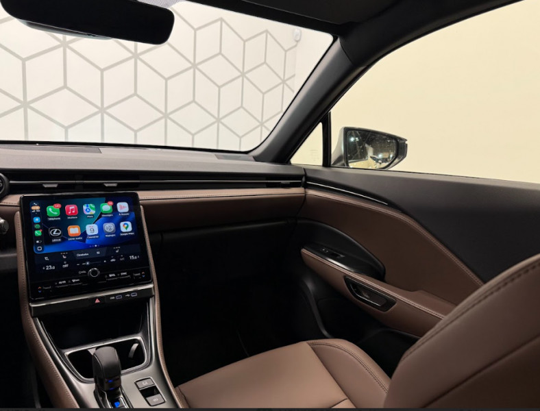 Airbag pour les genoux (conducteur) / Antenne de toit type aileron de requin / Appuie-tête AR à 2 réglages manuels / Appuie-têtes AV à 2 réglages manuels / Avertisseur sonore piétons (AVAS) / Boîte automatisée a variation continu / Bouton de désactivation de l'airbag (passager AV) / Broderie en forme de Y, satinée, avec double couture sur les rembourrages / Calandre trapézoïde avec garniture argentée / Capteurs de stationnement AV et AR et AR intelligents (ICS) / Cléélectronique (Smart Key) / Clignotants AV à LED / Climatisation automatique bi-zone avec contrôle à distance, recirculation automatique et purificateur d'air / Combiné d'instrumentation couleur 7", affichage haute définition / Commandes montées sur le volant, système audio/affichage/téléphone/reconnaissance vocale/DRCC/LTA / Contrôle de stabilité anti-roulis pour remorque / Coques de rétroviseurs extérieurs noires / Couvre-coffre, rabattable manuellement / Eclairage d'ambiance monocolore / ESP (direction assistée électriquement) / Essuie-glace AV à détecteur de pluie / Feux AV à LED simple lentille avec réglage manuel de la hauteur du faisceau et feux automatiques (AHB) / Feux de détresse automatiques (FHL) / Feux de stop actifs / Fixation i-Size, sièges AR gauche et droit / Jantes en alliage 18" gris foncé avec finition brillante avec pneumatiques 225/55 R18 / Kit de réparation des pneus / Lave caméra / Lexus Safety System+ 3 : Assistance à la conduite proactive (PDA) Lecture automatique des panneaux de circulation (RSA), Régulateur de vitesse dynamique (DRCC) avec rédution de la vitesse en courbe, Système de maintien dans la file de circulation (LTA), Système de sécurité pré-collision (PCS) avec détection diurne et nocturne des piétons et cyclistes, des motos (de jour uniquement), détection des intersections (ITA), correction active de trajectoire (ESA) et système de freinage d'urgence (EDSS) / Mode EV (100 % électrique) / Moniteur d'angle mort (BSM) avec avertisseur de circulation AR intelligent (RCTAB) / Moniteur de surveillance du conducteur (Driver Monitor) / Moulures de cadres de vitres latérales en acier inoxydable argenté / Moulures de portières noires / Pare-chocs AR avec échappement dissimulé / Pare-chocs AV et AR avec garniture argentée / Plaques de seuils de portes AV en résine avec insert métallique, avec inscription LEXUS / Pommeau de levier de vitesse gainé de Tahara / Porte-gobelets AV / Port USB (Type C), console centrale AV / Prétensionneurs de ceintures de sécuritéà l'AV et aux places AR gauche et droite / Prise de courant 12 V à l' AV / Prise de courant 12 V dans le coffre / Rappel visuel et sonore pour ceintures de sécurité, sièges AV et AR / Rétroviseur intérieur électrochrome / Rétroviseurs extérieurs avec fonction recul et fonction électrochromatique (côté conducteur) / Safe Exit Assist (SEA)- assistant de sortie du véhicule / Sélecteur de mode de conduite Eco/Normal / Siège passager AV à 6 réglages manuels / Support lombaire à 2 réglages, siège conducteur / Système antivol avec antidémarrage / alarme sonore / capteur d'intrusion / Système audio Premium à 6 HP / Système d'appel d'urgence (eCall) / Système de contrôle actif du son (ANC) / Système de contrôle de la pression de gonflage des pneumatiques (TPWS) avec localisation automatique / Système de freinage, stabilité, direction et d'antipatinage : ABS, BAS, EBD, ECB-R, EPB, EPS,TRC,VSC / Système de surveillance du conducteur (Driver Monitor) / Système multimédia Lexus Link Connect : Ecran tactile 9,8", Intégration smartphone (Apple CarPlay sans fil et Android Auto), Services connectés Lexus Link+, Système de navigation basé sur le Cloud (pendant 4 ans) / Tableau de bord garni de Tahara / Vitrage anti UV et isolant / Vitres latérales AR et lunette AR surteintées / Vitres latérales AV à traitement acoustique / Volant à 3 branches, revêtement Tahara