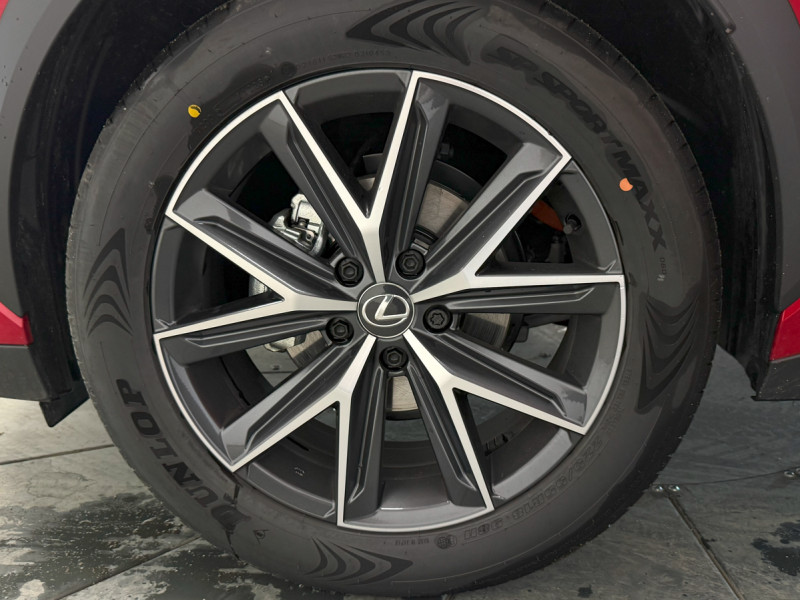 Airbag pour les genoux (conducteur) / Antenne de toit type aileron de requin / Appuie-tête AR à 2 réglages manuels / Appuie-têtes AV à 2 réglages manuels / Avertisseur sonore piétons (AVAS) / Boîte automatisée a variation continu / Bouton de désactivation de l'airbag (passager AV) / Calandre trapézoïde avec garniture argentée / Capteurs de stationnement AV et AR et AR intelligents (ICS) / Cléélectronique (Smart Key) / Clignotants AV à LED / Climatisation automatique bi-zone avec contrôle à distance, recirculation automatique et purificateur d'air / Commandes montées sur le volant, système audio/affichage/téléphone/reconnaissance vocale/DRCC/LTA / Contrôle de stabilité anti-roulis pour remorque / Coques de rétroviseurs extérieurs noires / Couvre-coffre, rabattable manuellement / Eclairage d'ambiance monocolore / ESP (direction assistée électriquement) / Essuie-glace AV à détecteur de pluie / Feux AV à LED simple lentille avec réglage manuel de la hauteur du faisceau et feux automatiques (AHB) / Feux de détresse automatiques (FHL) / Feux de stop actifs / Fixation i-Size, sièges AR gauche et droit / Jantes en alliage 18" gris foncé avec finition usinée avec pneumatiques 225/55 R18 / Kit de réparation des pneus / Lave caméra / Lexus Safety System+ 3 : Assistance à la conduite proactive (PDA) Lecture automatique des panneaux de circulation (RSA), Régulateur de vitesse dynamique (DRCC) avec rédution de la vitesse en courbe, Système de maintien dans la file de circulation (LTA), Système de sécurité pré-collision (PCS) avec détection diurne et nocturne des piétons et cyclistes, des motos (de jour uniquement), détection des intersections (ITA), correction active de trajectoire (ESA) et système de freinage d'urgence (EDSS) / Mode EV (100 % électrique) / Moniteur d'angle mort (BSM) avec avertisseur de circulation AR intelligent (RCTAB) / Moniteur de surveillance du conducteur (Driver Monitor) / Moulures de cadres de vitres latérales en acier inoxydable argenté / Moulures de portières noires / Pare-chocs AR avec échappement dissimulé / Pare-chocs AV et AR avec garniture argentée / Peinture bi-ton avec rétroviseurs extérieurs et toit peints en noir / Plaques de seuils de portes AV en résine avec insert métallique, avec inscription LEXUS / Pommeau de levier de vitesse gainé de Tahara / Porte-gobelets AV / Prétensionneurs de ceintures de sécuritéà l'AV et aux places AR gauche et droite / Prise de courant 12 V à l' AV / Prise de courant 12 V dans le coffre / Rappel visuel et sonore pour ceintures de sécurité, sièges AV et AR / Rétroviseur intérieur électrochrome / Rétroviseurs extérieurs avec fonction recul et fonction électrochromatique (côté conducteur) / Safe Exit Assist (SEA)- assistant de sortie du véhicule / Sélecteur de mode de conduite Eco/Normal / Siège passager AV à 6 réglages manuels / Support lombaire à 2 réglages, siège conducteur / Surpiqûres Tatami double ligne rouge, avec double couture sur les rembourrages / Système antivol avec antidémarrage / alarme sonore / capteur d'intrusion / Système audio Premium à 6 HP / Système d'appel d'urgence (eCall) / Système de contrôle actif du son (ANC) / Système de contrôle de la pression de gonflage des pneumatiques (TPWS) avec localisation automatique / Système de freinage, stabilité, direction et d'antipatinage : ABS, BAS, EBD, ECB-R, EPB, EPS,TRC,VSC / Système de surveillance du conducteur (Driver Monitor) / Système multimédia Lexus Link Connect : Ecran tactile 9,8", Intégration smartphone (Apple CarPlay sans fil et Android Auto), Services connectés Lexus Link+, Système de navigation basé sur le Cloud (pendant 4 ans) / Tableau de bord garni de Tahara / Vitrage anti UV et isolant / Vitres latérales AR et lunette AR surteintées / Vitres latérales AV à traitement acoustique / Volant à 3 branches, revêtement Tahara