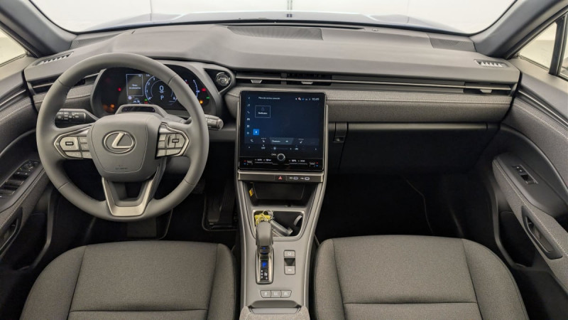 Prétensionneurs de ceintures de sécuritéà l'AV et aux places AR gauche et droite / Feux de stop actifs / Vitrage anti UV et isolant / Kit de réparation des pneus / Clignotants AV à LED / Mode EV (100% électrique) / Essuie-glace AV à détecteur de pluie / Avertisseur sonore piétons (AVAS) / Système d'appel d'urgence (eCall) / Contrôle de stabilité anti-roulis pour remorque / Appuie-tête AR à 2 réglages manuels / Système de freinage, stabilité, direction et d'antipatinage : ABS, BAS, EBD, ECB-R, EPB, EPS,TRC,VSC / Système antivol avec antidémarrage / alarme sonore / capteur d'intrusion / Système de contrôle de la pression de gonflage des pneumatiques (TPWS) avec localisation automatique / Coques de rétroviseurs extérieurs noires / Calandre trapézoïde avec garniture argentée / Feux AV à LED simple lentille avec réglage manuel de la hauteur du faisceau et feux automatiques (AHB) / Moulures de portières noires / Moulures de cadres de vitres latérales en acier inoxydable argenté / Pare-chocs AR avec échappement dissimulé / Jantes en alliage 17" gris foncé avec pneumatiques 225/60 R17 / Lexus Safety System+ 3 : Assistance à la conduite proactive (PDA) Lecture automatique des panneaux de circulation (RSA), Régulateur de vitesse dynamique (DRCC) avec rédution de la vitesse en courbe, Système de maintien dans la file de circulation (LTA), Système de sécurité pré-collision (PCS) avec détection diurne et nocturne des piétons et cyclistes, des motos (de jour uniquement), détection des intersections (ITA), correction active de trajectoire (ESA) et système de freinage d'urgence (EDSS) / Sélecteur de mode de conduite Eco/Normal / Airbag pour les genoux (conducteur) / Rappel visuel et sonore pour ceintures de sécurité, sièges AV et AR / Fixation i-Size, sièges AR gauche et droit / 4x Ports USB (2x AV et 2x AR) / Combiné d'instrumentation couleur 7", affichage haute définition / Système multimédia Lexus Link Connect : Ecran tactile 9,8", Intégration smartphone (Apple CarPlay sans fil et Android Auto), Services connectés Lexus Link+, Système de navigation basé sur le Cloud (pendant 4 ans) / Commandes montées sur le volant, système audio/affichage/téléphone/reconnaissance vocale/DRCC/LTA / Port USB (Type C), console centrale AV / Prise de courant 12 V à l' AV / Prise de courant 12 V dans le coffre / Système audio Premium à 6 HP / Sellerie garnie de tissu / Siège passager AV à 4 réglages manuels / Support lombaire à 2 réglages, siège conducteur / Cléélectronique (Smart Key) / Climatisation automatique bi-zone avec contrôle à distance, recirculation automatique et purificateur d'air / Couvre-coffre, rabattable manuellement / Plaques de seuils de portes AV en résine, avec inscription LEXUS / Pommeau de levier de vitesse gainé de Tahara / Porte-gobelets AV / Tableau de bord garni de tissu / Volant à 3 branches, revêtement Tahara / Antenne de toit type aileron de requin / Bouton de désactivation de l'airbag (passager AV) /