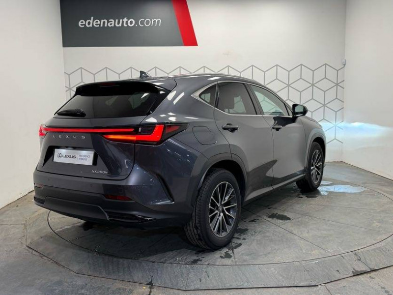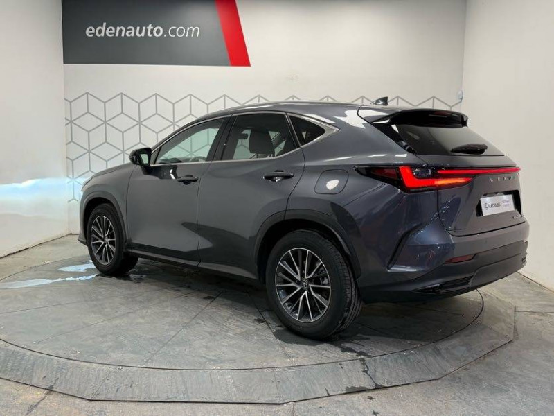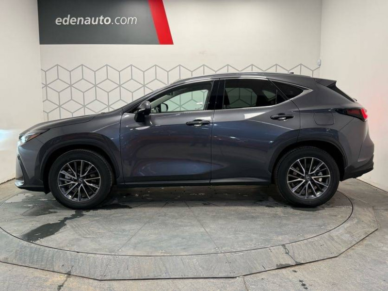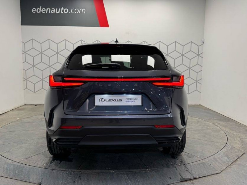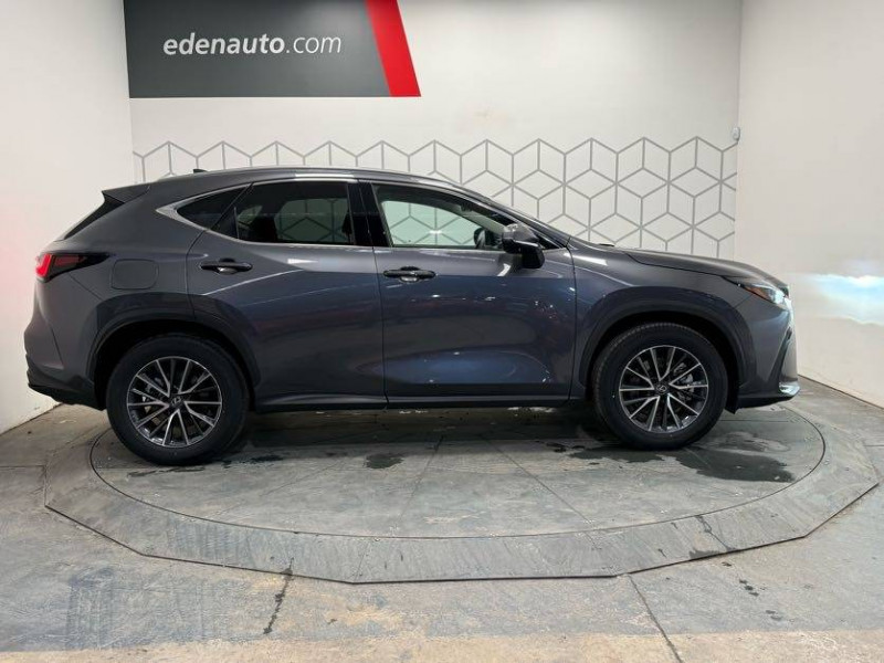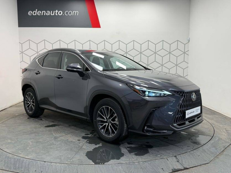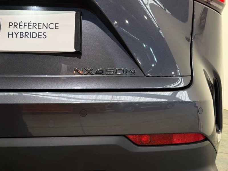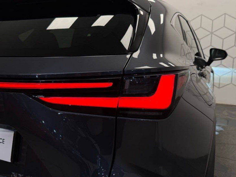 Accès et sortie facilités (siège conducteur et volant) / Antenne de toit type aileron de requin / Appuie-tête AR à 2 réglages manuels / Appuie-têtes AV à 2 réglages manuels / Avertisseur sonore piétons (AVAS) / Banquette AR rabattable manuellement 60/40 / Bouclier AV avec calandre trapézoïdale chromée / Bouton de désactivation de l'airbag (passager AV) / Câble de recharge (5 m) pour prise domestique (type 2/mode 2) / Câble de recharge (7,5 m) pour prise type 2/mode 3 / Cache-bagages rabattable manuellement / Capteurs de stationnement AV et AR et AR intelligents (ICS) / Chargeur embarqué 6,6 kW / Chargeur sans fil pour Smartphone / Climatisation automatique bi-zone avec recirculation automatique, S-Flow, capteur d'humidité / Commandes au volant (audio, affichage, téléphone, reconnaissance vocale, DRCC, LTA) / Connectivité audio et téléphonie mobile Bluetooth / Connectivité Lexus Link Premium (gratuit pendant 4 ans) / Console centrale AV avec 2 ports USB de type A et C et AR de type C / Contrôle de stabilité anti-roulis pour remorque / Eclairage d'ambiance multicolore (64 couleurs) / Electrified Program / Feux de détresse automatiques (AFRHL) / Feux de route automatiques (AHB) / Feux de stop actifs / Filtre à air avec extracteur de pollen et désodorisant / Gants et serviettes Lexus / Hayon électrique avec fonction de mémorisation de la hauteur / Hayon électrique avec ouverture et fermeture au pied / Inserts Noir 3D / Jantes en alliage 18" à 15 branches avec pneumatiques 235/60 R18 / Kit de réparation des pneus / Lexus Safety System + 3 : Lecture automatique des panneaux de circulation (RSA), Régulateur de vitesse dynamique (DRCC) avec réduction de la vitesse en courbe, Système de maintien dans la file de circulation avancé (LTA), Système de sécurité pré-collision (PCS) avec détection des vitesse en courbe, Système de maintien dans la file de circulation avancé (LTA), Système de sécurité pré-collision (PCS) avec détection des intersections (ITA) et correction active de trajectoire (ESA) / Lunette AR surteintées / Mode EV (100 % électrique) / Mode EV / Hybride automatique / Mode Trail / Moniteur d'angle mort (BSM) avec avertisseur de circulation AR intelligent (RCTAB) / Plaques de seuils de portes AV en acier avec logo LEXUS / Points d'ancrage i-Size aux places latérales AR / Points d'ancrage ISOFIX aux places latérales AR / Pommeau de levier de vitesse gainé de cuir / Porte-lunettes / Prétensionneurs de ceintures de sécurité AV et aux places latérales AR / Projecteurs AV bi-LED à simpe lentille / Rails de toit noirs / Rappel visuel et sonore de non-bouclage des ceintures de sécurité / Rétroviseurs extérieurs électrochromatiques (atténuation automatique de la brillance) / Sac de rangement de câbles / Safe Exit Assist (SEA)- assistant de sortie du véhicule / Sélecteur de mode de conduite (ECO, NORMAL, SPORT) / Sellerie simili-cuir Tahara / Services connectés Lexus Link Hybride Rechargeable : Localisateur de bornes de recharge publique, Niveau de charge de la batterie, Programmation de la charge / Soutien lombaire (2 positions) pour le conducteur / Système antivol, antidémarrage électronique, capteur d'intrusion et alarme sonore / Système audio Pioneer à 10 HP / Système d'appel d'urgence (eCall) / Système de freinage, stabilité, direction et d'antipatinage : ABS, BAS, EBD, ECB-R, EPB, EPS,TRC,VSC / Système de navigation embarqué Lexus Link Pro avec écran central tactile 14" volant réglable électriquement / Système de navigation Lexus Link via le cloud / Système de surveillance du conducteur (Driver Monitor) / Système d'ouverture/fermeture électronique des portes (e-Latch) / Système multimédia Lexus Link Pro : Apple CarPlay sans fil et Android Auto filaire, Ecran central tactile 14", Services connectés Lexus Link / Transmission 4WD / Vision panoramique à 360° (PVM) avec détection AR des piétons / Vitres latérales AR / Vitres latérales AV acoustiques et anti-UV / Volant à 3 branches gainé de cuir / Volant chauffant