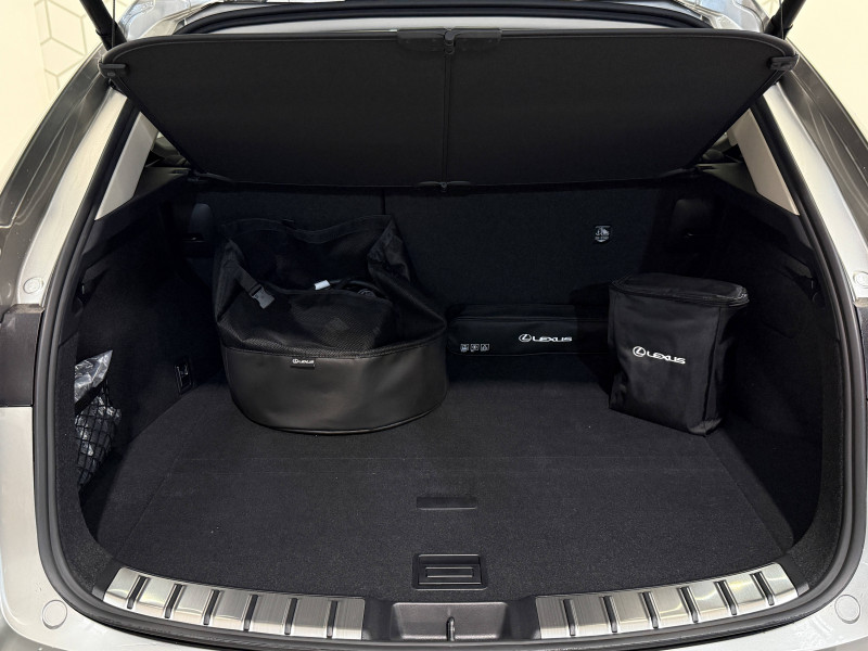 Accès et sortie facilités (siège conducteur et volant) / Antenne de toit type aileron de requin / Appuie-tête AR à 2 réglages manuels / Appuie-têtes AV à 2 réglages manuels / Avertisseur sonore piétons (AVAS) / Banquette AR rabattable manuellement 60/40 / Bouclier AV avec calandre trapézoïdale chromée / Bouton de désactivation de l'airbag (passager AV) / Câble de recharge (5 m) pour prise domestique (type 2/mode 2) / Câble de recharge (7,5 m) pour prise type 2/mode 3 / Cache-bagages rabattable manuellement / Capteurs de stationnement AV et AR et AR intelligents (ICS) / Chargeur embarqué 6,6 kW / Chargeur sans fil pour Smartphone / Climatisation automatique bi-zone avec recirculation automatique, S-Flow, capteur d'humidité / Commandes au volant (audio, affichage, téléphone, reconnaissance vocale, DRCC, LTA) / Connectivité audio et téléphonie mobile Bluetooth / Connectivité Lexus Link Premium (gratuit pendant 4 ans) / Console centrale AV avec 2 ports USB de type A et C et AR de type C / Contrôle de stabilité anti-roulis pour remorque / Eclairage d'ambiance multicolore (64 couleurs) / Electrified Program / Feux de détresse automatiques (AFRHL) / Feux de route automatiques (AHB) / Feux de stop actifs / Filtre à air avec extracteur de pollen et désodorisant / Gants et serviettes Lexus / Hayon électrique avec fonction de mémorisation de la hauteur / Hayon électrique avec ouverture et fermeture au pied / Inserts Noir 3D / Jantes en alliage 18" à 15 branches avec pneumatiques 235/60 R18 / Kit de réparation des pneus / Lexus Safety System + 3 : Lecture automatique des panneaux de circulation (RSA), Régulateur de vitesse dynamique (DRCC) avec réduction de la vitesse en courbe, Système de maintien dans la file de circulation avancé (LTA), Système de sécurité pré-collision (PCS) avec détection des intersections (ITA) et correction active de trajectoire (ESA) / Lunette AR surteintées / Mode EV (100 % électrique) / Mode EV / Hybride automatique / Mode Trail / Moniteur d'angle mort (BSM) avec avertisseur de circulation AR intelligent (RCTAB) / Plaques de seuils de portes AV en acier avec logo LEXUS / Points d'ancrage i-Size aux places latérales AR / Points d'ancrage ISOFIX aux places latérales AR / Pommeau de levier de vitesse gainé de cuir / Porte-lunettes / Prétensionneurs de ceintures de sécurité AV et aux places latérales AR / Projecteurs AV bi-LED à simpe lentille / Rails de toit noirs / Rappel visuel et sonore de non-bouclage des ceintures de sécurité / Rétroviseurs extérieurs électrochromatiques (atténuation automatique de la brillance) / Sac de rangement de câbles / Safe Exit Assist (SEA)- assistant de sortie du véhicule / Sélecteur de mode de conduite (ECO, NORMAL, SPORT) / Sellerie simili-cuir Tahara / Services connectés Lexus Link Hybride Rechargeable : Localisateur de bornes de recharge publique, Niveau de charge de la batterie, Programmation de la charge / Soutien lombaire (2 positions) pour le conducteur / Système antivol, antidémarrage électronique, capteur d'intrusion et alarme sonore / Système audio Pioneer à 10 HP / Système d'appel d'urgence (eCall) / Système de freinage, stabilité, direction et d'antipatinage : ABS, BAS, EBD, ECB-R, EPB, EPS,TRC,VSC / Système de navigation embarqué Lexus Link Pro avec écran central tactile 14" volant réglable électriquement / Système de navigation Lexus Link via le cloud / Système d'ouverture/fermeture électronique des portes (e-Latch) / Système multimédia Lexus Link Pro : Apple CarPlay sans fil et Android Auto filaire, Ecran central tactile 14", Services connectés Lexus Link / Transmission 4WD / Vision panoramique à 360° (PVM) avec détection AR des piétons / Vitres latérales AR / Vitres latérales AV acoustiques et anti-UV / Volant à 3 branches gainé de cuir / Volant chauffant