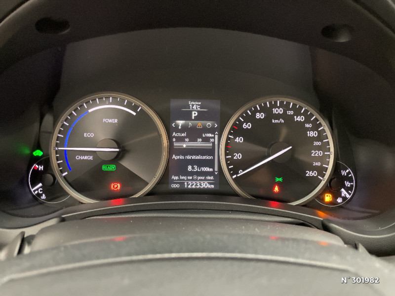 Jantes alliage 18" avec pneumatiques 225/60 R18 / Inserts Platine / Projecteurs antibrouillard AV à LED avec fonction d'éclairage d'intersection / Rails de toit en aluminium / Rétroviseur intérieur électrochrome / Seuils des portes en aluminium / Sièges AV chauffants et réglages électriquement : longitudinal/hauteur et inclinaison d'assise/incli naison du dossier pour le conducteur et le passager / Système de navigation Lexus : navigation Europe et info Trafic RDS/TMC / Système Multimédia Lexus Audio Pioneer 8HP, lecteur CD, port USB, prise AUX, écran central couleur fixe 8" et commande par molette rotative / Vitres latérales AR et lunette AR surteintées / Volant et pommeau de levier de vitesses gainés de cuir / Capacité de traction jusqu'à 1500 kg / Chargeur sans fil pour Smartphone / Connectivité audio et téléphonie mains libres Bluetooth / Essuie-glace AV à détecteur de pluie / Hayon à ouverture et fermeture assistées électriquement / Horloge analogique / Projecteurs à LED (feux de croisements) /halogènes (feux de route)