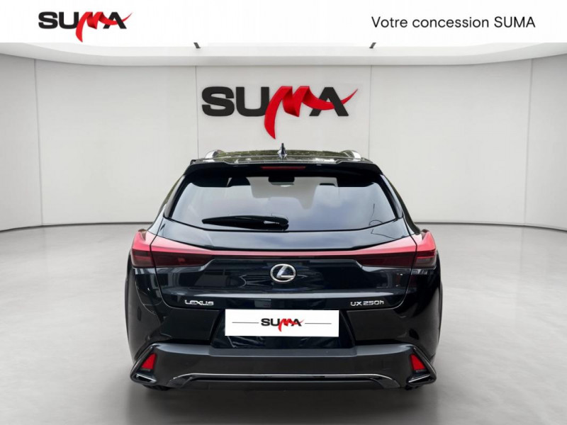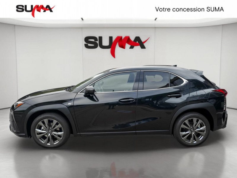Capteurs de stationnement AV et AR et AR intelligents (ICS) / Climatisation automatique bi-zone avec recirculation automatique / capteur d'humiditéet et technologie Nanoe / Feux de brouillard AV à LED / Jantes en alliage 18 F SPORT avec pneumatiques Runflat 225/50 R18 / Pommeau de levier de vitesse gainé de cuir / Réglage automatique de la hauteur du faisceau à l'arrêt / Rails de toit en aluminium / Rétroviseur intérieur électrochromatique (atténuation automatique de la brillance) / Système Multimédia Lexus Link Connect : écran central tactile 8 et système de Navigation (Cloud) / système audio Panasonic à 6 HP / Verrouillage automatique des portières en roulant / Volant gainés de cuir / 4 ports USB Type-C (2 AV / Airbags rideaux sur toute la longueur de la voiture / Antenne de toit type aileron de requin / Bouclier AV avec calandre trapézoïdale à motifs en nid d'abeilles aux finitions cuivrées / Boucliers AR aux finitions cuivrées / Bouton de désactivation de l'airbag (passager AV) / Capacité de remorquage : 750 kg / Coffre à ouverture et fermeture électrique / affichage / téléphone / reconnaissance vocale / DRCC / LTA) / Connectivité audio et téléphonie Bluetooth / DAB (Radio Numérique Terrestre) / Démarrage sans clé (SmartStart) / Eclairage d'intersection / Essuie-glace AV à détecteur de pluie / Feux de stop actifs / Inserts noir laqué / Inserts Noir laqué (tableau de bord) / Intégration Smartphone Apple CarPlay et Android Auto / Lexus Safety System + 2 / 5 Système de sécurité pré-collision (PCS) / détection de piétons la nuit et de cyclistes le jour / régulateur de vitesse dynamique (DRCC) / système de maintien dans la file de circulation avancé (LTA) / lecture auto des panneaux de circulation. / Logos F SPORT sur les ailes AV / Mode EV (100 % électrique) / Moniteur d'angle mort (BSM) avec avertisseur de circulation AR intelligent (RCTAB) / Points d'ancrage ISOFIX aux places latérales AR / Prétensionneurs de ceintures de sécurité AV et aux places latérales AR / Rappel visuel et sonore de non-bouclage des ceintures de sécurité AV / rabattables et dégivrables électriquement / Services connectés via l'application Lexus Link / Sièges AV réglables manuellement : Longitudinal / hauteur d'assise / inclinaison du dossier / Système antivol avec antidémarrage / alarme sonore / capteur d'intrusion / Système d'accès sans clé Smart Entry (portières AV et coffre) / Système d'appel d'urgence (eCall) / Système de contrôle actif du son (ASC) / Système de freinage / stabilité / direction et d'antipatinage : ABS / BAS / ECB-R / EPB / EPS / TRC / VSC / Sélecteur de mode de conduite (ECO / NORMAL / SPORT) / Vitres latérales AR et lunette AR surteintées / Vitres latérales AV anti-UV