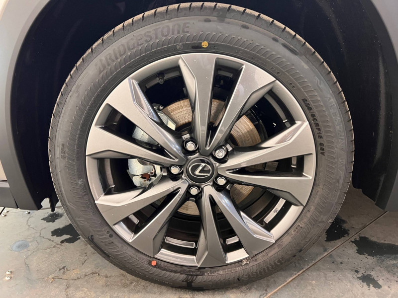 4 ports USB Type-C (2 AV, 2 AR) / Prise 12 V / 8 Airbags : airbag frontaux / latéraux et de genoux pour le conducteur et le passager AV, airbags rideaux sur toute la longueur du véhicule / Accoudoir central AR avec porte-gobelets (x2) / Antenne de toit type aileron de requin / Boîte automatisée a variation continu / Bouclier AV avec calandre trapézoïdale à motifs en nid d'abeilles aux finitions cuivrées / Boucliers AR aux finitions cuivrées / Bouton de désactivation de l'airbag (passager AV) / Capteurs de stationnement AV et AR et AR intelligents (ICS) / Chargeur sans fil pour Smartphone / Climatisation automatique bi-zone avec recirculation automatique / capteur d'humiditéet et technologie Nanoe / Commandes au volant (audio, affichage, téléphone, reconnaissance vocale, DRCC, LTA) / Connectivité audio et téléphonie Bluetooth / DAB (Digital Audio Broadcasting) / Double verrouillage des portières / Eclairage d'intersection / Essuie-glace AV à détecteur de pluie / Feux de stop actifs / Inserts Noir laqué (tableau de bord) / Jantes en alliage 18" F SPORT avec pneumatiques Runflat 225/50 R18 / Lexus Safety System+ 3:Lecture automatique des panneaux de circulation (RSA), Régulateur de vitesse dynamique (DRCC) avec réduction de la vitesse en courbe, Système de maintien dans la file de circulation avancé (LTA), Système de sécurité pré-collision (PCS) avec détection des intersections (ITA) et correction active de trajectoire (ESA) / Logos F SPORT sur les ailes AV / Mode EV (100 % électrique) / Moniteur d'angle mort (BSM) avec Safe Exit Assist (SEA) et feux de détresse automatiques et davertisseur de circulation AR intelligent (RCTAB) / Points d'ancrage ISOFIX aux places latérales AR / Pommeau de levier de vitesse gainé de cuir / Prétensionneurs de ceintures de sécurité AV et aux places latérales AR / Projecteurs AV LED simple lentille, réglage automatique de la hauteur du faisceau à l'arrêt / Rails de toit en aluminium / Rappel visuel et sonore de non-bouclage des ceintures de sécurité AV / Rétroviseur intérieur électrochromatique (atténuation automatique de la brillance) / Sélecteur de mode de conduite (ECO, NORMAL, SPORT) / Services connectés via l'application Lexus Link / Sièges AV réglables manuellement : Longitudinal / hauteur d'assise / inclinaison du dossier / Système antivol avec antidémarrage / alarme sonore / capteur d'intrusion / Système antivol bande ultra large (entraîne la suppression de la clé plate) / Système d'accès sans clé Smart Entry (portières AV et coffre) / Système d'appel d'urgence (eCall) / Système de freinage, stabilité, direction et d'antipatinage : ABS, BAS, EBD, ECB-R, EPB, EPS,TRC,VSC / Système de surveillance du conducteur (Driver Monitor) / Système Multimédia Lexus Link Connect : écran central tactile 8" et système de Navigation (Cloud), système audio Panasonic à 6 HP / Transmission à rapport variable en continu à commande électronique (E-CVT) / Verrouillage automatique des portières en roulant / Vitres latérales AR et lunette AR surteintées / Vitres latérales AV anti-UV / Volant chauffant