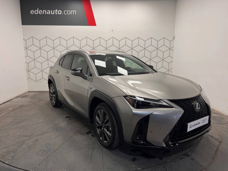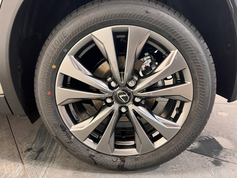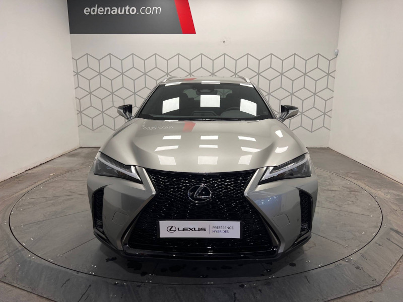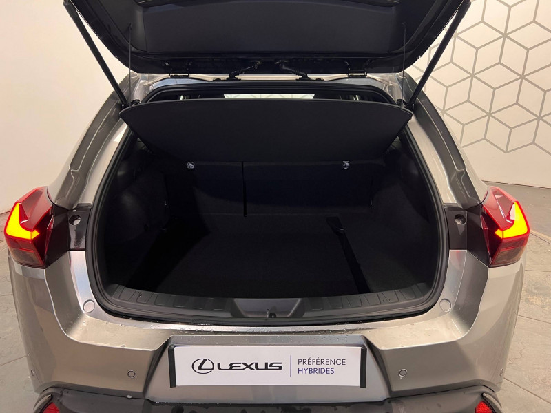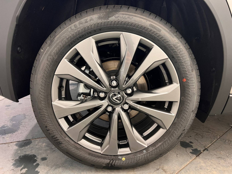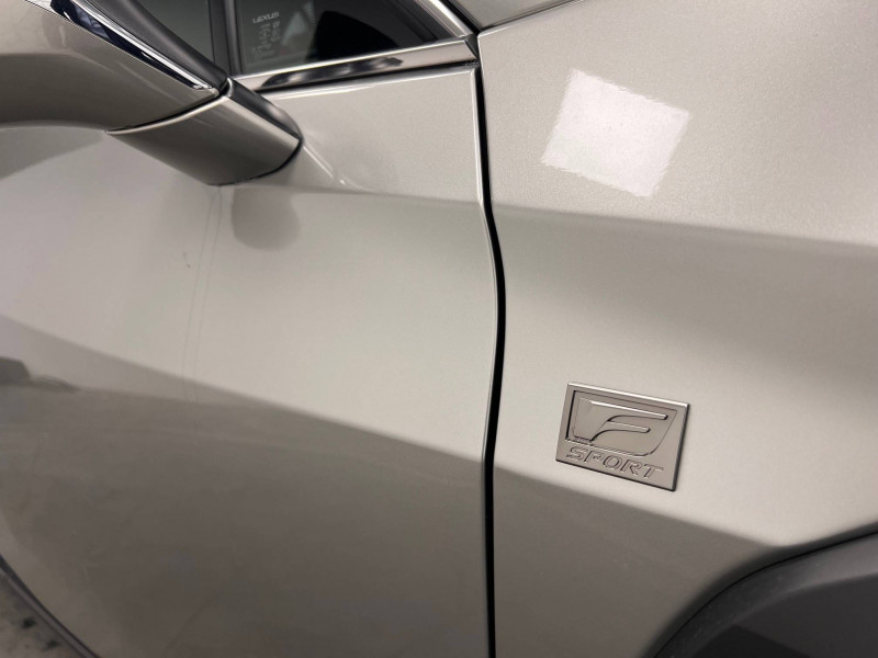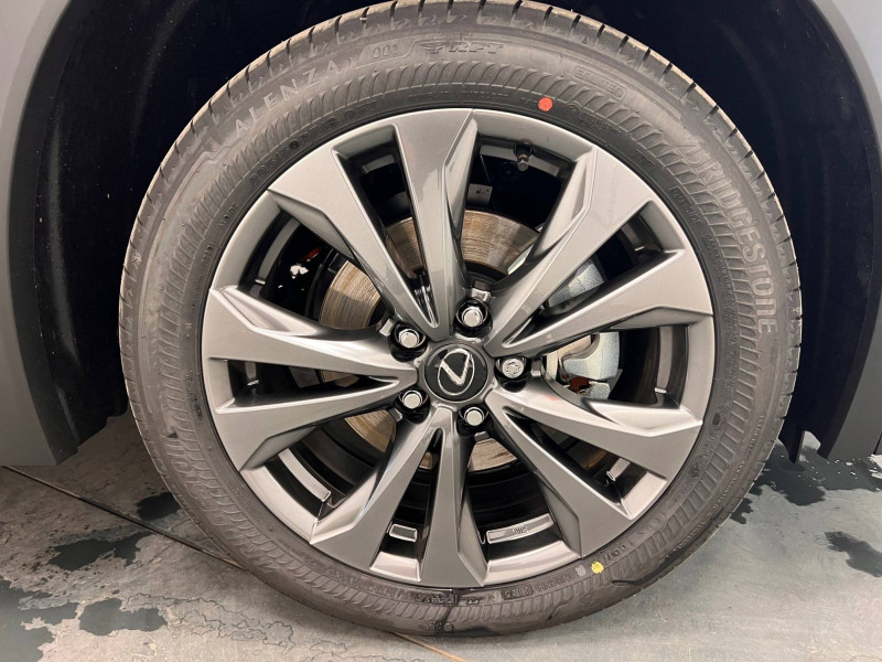 4 ports USB Type-C (2 AV, 2 AR) / Prise 12 V / 8 Airbags : airbag frontaux / latéraux et de genoux pour le conducteur et le passager AV, airbags rideaux sur toute la longueur du véhicule / Accoudoir central AR avec porte-gobelets (x2) / Antenne de toit type aileron de requin / Boîte automatisée a variation continu / Bouclier AV avec calandre trapézoïdale à motifs en nid d'abeilles aux finitions cuivrées / Boucliers AR aux finitions cuivrées / Bouton de désactivation de l'airbag (passager AV) / Capteurs de stationnement AV et AR et AR intelligents (ICS) / Chargeur sans fil pour Smartphone / Climatisation automatique bi-zone avec recirculation automatique / capteur d'humiditéet et technologie Nanoe / Commandes au volant (audio, affichage, téléphone, reconnaissance vocale, DRCC, LTA) / Connectivité audio et téléphonie Bluetooth / DAB (Digital Audio Broadcasting) / Double verrouillage des portières / Eclairage d'intersection / Essuie-glace AV à détecteur de pluie / Feux de stop actifs / Inserts Noir laqué (tableau de bord) / Jantes en alliage 18" F SPORT avec pneumatiques Runflat 225/50 R18 / Lexus Safety System+ 3:Lecture automatique des panneaux de circulation (RSA), Régulateur de vitesse dynamique (DRCC) avec réduction de la vitesse en courbe, Système de maintien dans la file de circulation avancé (LTA), Système de sécurité pré-collision (PCS) avec détection des intersections (ITA) et correction active de trajectoire (ESA) / Logos F SPORT sur les ailes AV / Mode EV (100 % électrique) / Moniteur d'angle mort (BSM) avec Safe Exit Assist (SEA) et feux de détresse automatiques et davertisseur de circulation AR intelligent (RCTAB) / Points d'ancrage ISOFIX aux places latérales AR / Pommeau de levier de vitesse gainé de cuir / Prétensionneurs de ceintures de sécurité AV et aux places latérales AR / Projecteurs AV LED simple lentille, réglage automatique de la hauteur du faisceau à l'arrêt / Rails de toit en aluminium / Rappel visuel et sonore de non-bouclage des ceintures de sécurité AV / Rétroviseur intérieur électrochromatique (atténuation automatique de la brillance) / Sélecteur de mode de conduite (ECO, NORMAL, SPORT) / Services connectés via l'application Lexus Link / Sièges AV réglables manuellement : Longitudinal / hauteur d'assise / inclinaison du dossier / Système antivol avec antidémarrage / alarme sonore / capteur d'intrusion / Système antivol bande ultra large (entraîne la suppression de la clé plate) / Système d'accès sans clé Smart Entry (portières AV et coffre) / Système d'appel d'urgence (eCall) / Système de freinage, stabilité, direction et d'antipatinage : ABS, BAS, EBD, ECB-R, EPB, EPS,TRC,VSC / Système de surveillance du conducteur (Driver Monitor) / Système Multimédia Lexus Link Connect : écran central tactile 8" et système de Navigation (Cloud), système audio Panasonic à 6 HP / Transmission à rapport variable en continu à commande électronique (E-CVT) / Verrouillage automatique des portières en roulant / Vitres latérales AR et lunette AR surteintées / Vitres latérales AV anti-UV / Volant chauffant