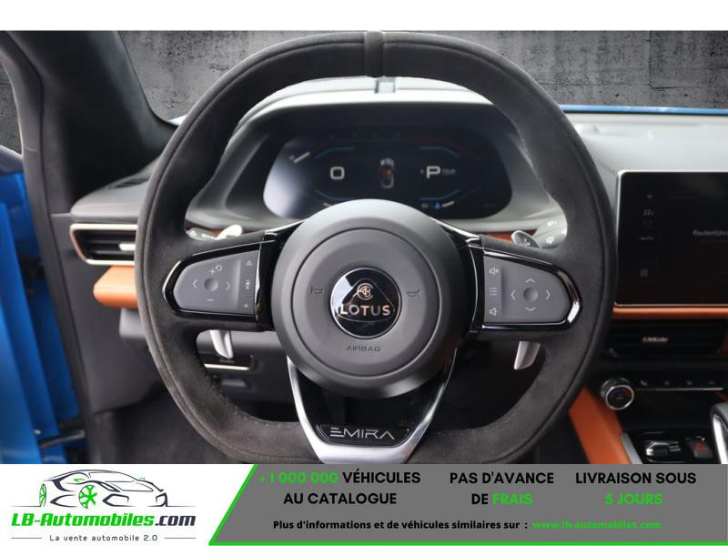 Référence : 994563 Vos Avantages chez LB-AUTOMOBILES.com / Prix affiché TTC Livré hors carte grise / Livraison sous 10 jours dans toute la France hors 31 / Pas d?avance de frais paiement du véhicule 100% à la livraison par virement. Lotus Emira Neuf remisée, Lotus Emira Occasion Toulouse Beaupuy 31850, Lotus Emira Véhicule sorti de réseau collaborateur, Lotus Emira import, Lotus Emira importateur, Lotus Emira Livraison possible dans toute la France sous 5 jours, Lotus Emira, Lotus Emira Location Option Achat, Lotus Emira LLD, Lotus Emira Longue Durée, Lotus Emira TVA récupérable. Possibilité d'extension de garantie 12, 24,36 mois, Pour tout autres voitures import neufs ou occasions collaborateur fortement remisée, Mandataire Audi, Mandataire BMW, Mandataire Volkswagen, Mandataire Mercedes, Mandataire Peugeot Espagne, Mandataire Renault Espagne, Porsche import, Mandataire Citroën Espagne, Mandataire Seat Espagne, n'hésitez pas à nous contacter. « Sous réserve de vente préalable et erreur de saisie » Principaux équipements : - ABS - Airbags frontaux - Android Auto - Antidémarrage - Apple CarPlay - Bluetooth - Capteur de lumière - Carnet d'entretien - Climatisation automatique - Commande vocale - Contrôle de la pression des pneus - Direction assistée - Éclairage d'ambiance - Écran tactile - ESP - Fermeture centralisée - Feux de jour LED - GPS - Jantes alliage - Kit mains libres - Ordinateur de bord - Phares LED - Pneus été - Propulsion - Radio DAB - Réglage électrique des sièges - Réglage électrique des sièges avec fonction mémoire - Régulateur de vitesse - Rétroviseur extérieur électrique - Sièges chauffants - Sièges sport - Système antipatinage - Système d'alarme - Système de sonorisation - Tuner/radio - Véhicule non-fumeur - Vitres électriques - Volant en cuir - Volant multifonction - Radar de recul : Arrière, Appareil photo - Première main : Oui