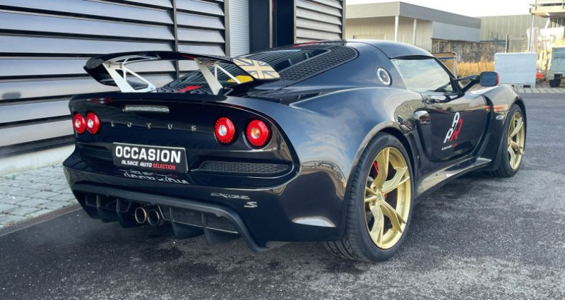 Alsace Auto Sélection vous propose cette Lotus Exige S Victory Edition 4/10 Entretien à jour CG française Elle célèbre le premier titre de Champion du Monde des Constructeurs de Formule 1 de Lotus en 1963. Elle possède le numéro 4 sur 10. Sa couleur Starlight Black alliée au rouge et or met encore plus en valeur ses lignes sportives. Cette décoration spéciale va jusque dans les moindres détails avec le lettrage Lotus couleur or sur le panneau arrière. Elle est équipée du moteur Toyota V6 compressé de 3,5l développant 350 chevaux accouplé à la boîte IPS 6 rapports. Cette boîte est un vrai régal et facilite encore davantage la prise en main avec des très belles relances moteur (Talon/pointe) au rétrogradage. En complément cette Lotus est équipé d'un Kit Kommo-Tec EX-430 ( fitltre a air carbone et reprogrmation ) qui voit sa puissance passé de 350 chx à 398chx, également installé sur la voiture un echappement à valve aussi de chez Kommo-Tec lui s offrant une sonorité evoutante Cette Lotus dispose d'un CT a jour (06/25) et d'un entretien à jour fait chez des spécilaistes Les feux AV sont recouvert d'un film de protection XPEL ainsi que d'un bandeau sur la haut du pre brise contre le soleil Marque : LOTUS Modèle : EXIGE S Kilométrage : 58 000 kms Carburant : Essence Boite de vitesse : Automatique 6 Rapports Couleur extérieur : Starlight Black Couleur Intérieure: Cuir & Alcantara noir Puissance : 398 ch DIN ( 25 CV fiscaux ) Prix : 74 900€ TTC Extérieur et Chassis : Rétroviseurs extérieurs réglage extérieur Ampoules de phares halogènes 2 roues motrices Châssis CUP Échappement sport Étriers de freins rouges Jantes alu 17 Pack sport Intérieur : Système audio inclut DVD 4 haut-parleurs Système audio lecteur CD et MP3 Boite automatique Pack clim Palettes au volant Pédalier alu Sièges baquets Sécurité : Antipatinage ABS Assistance au freinage d'urgence ESP Contrôle de freinage en courbe Alarme Factures d'entretien Peinture métallisée