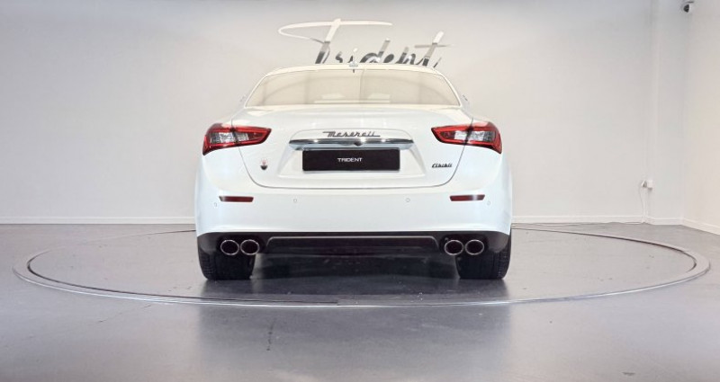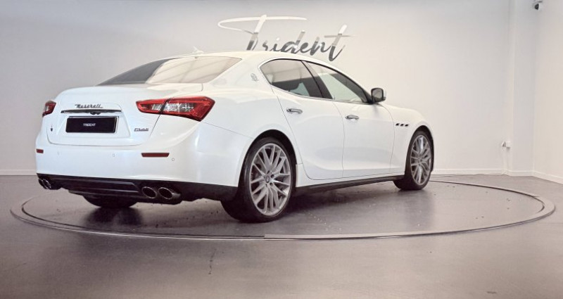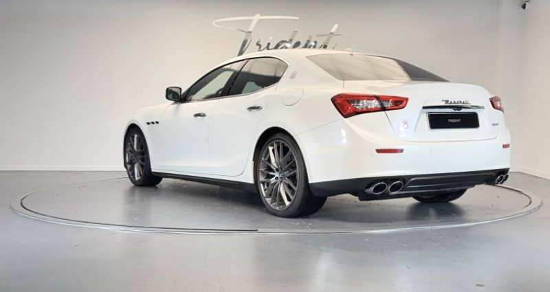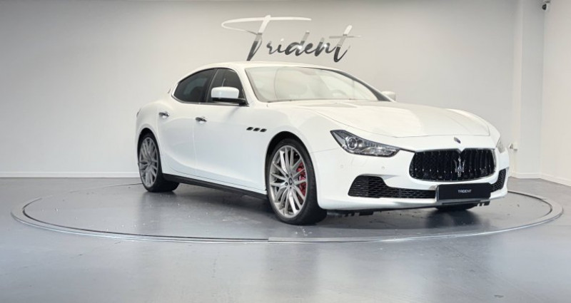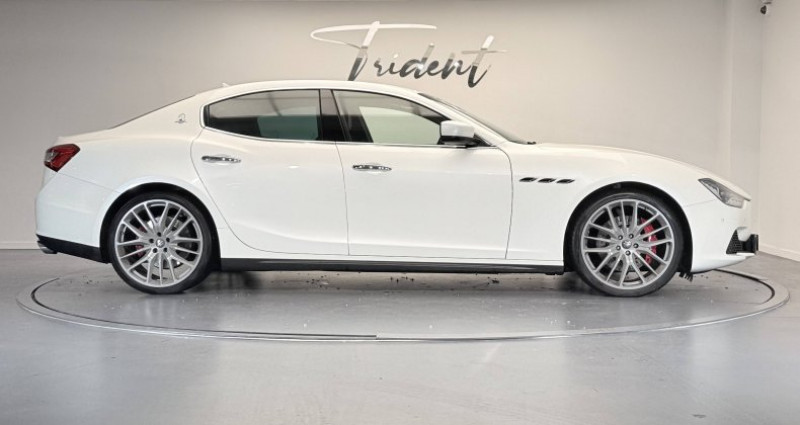 Cylindrée : 2987 cm3 Nb. Vitesse : 8 - Antivol avec alarme périmétrique, volumétrique, antisoulèvement et immobilisateur - Etriers de freins de couleur rouge - Intérieur tout cuir pleine fleur Poltrona Frau sur garnitures intérieures et sièges non perforés - Pack Business Plus *** Avec : Capteurs de stationnement AV et AR *** Avec : Sièges AV chauffants *** Avec : Système de navigation - Pack Convenience *** Avec : Caméra de recul *** Avec : Coffre à ouverture électrique mains-libres *** Avec : HomeLink: Dispositif intégré pour l'ouverture à distance de la porte de garage - Pack Premium *** Avec : Feux AV Bi-Xénon avec système Day Running Light (DRL) et Adaptive Front Lighting System (AFS) *** Avec : Pédalier réglable électriquement *** Avec : Réglage électrique de la colonne de direction en hauteur et en longueur *** Avec : Rétroviseurs extérieurs électrochromiques *** Avec : Sièges AV réglables électriquement (8 positions + 4 positions pour les lombaires) avec 2 positions mémorisables pour le siège conducteur *** Avec : Système d'accès Easy Entry-Exit sur la colonne de direction et sur le siège - Pack Sport 21 *** Avec : Jantes alliage 21'' design Titano anthracite *** Avec : Maserati Active Shifting: Palettes de changement de vitesse en aluminium sur la colonne de direction *** Avec : Pédalier Sport en inox avec inserts anti-dérapants - Pare-soleil AR électrique - Peinture perlée vernie (tri-couches) - Roue de secours 18 - Suspension Sport avec amortisseurs Koni auto-adaptatifs - Système Audio Premium Harman Kardon 10HP de 600W - Vitres AR en verre feuilletée à haute isolation thermique et acoustique - Vitres latérales AR et lunette AR teintées