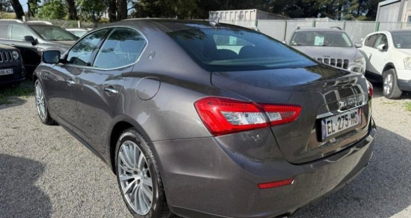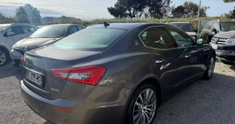 Maserati GHIBLI 3.0 V6 275CH START/STOP DIESEL, (Berline), GRIS F, 17cv, 4 portes, mise en circulation le 28-07-2016, garantie 3 mois (3 MOIS). 5 places, couleur intérieur : NOIR, longueur : 4,97 mètres, boîte de vitesse : automatique OPTIONS ET EQUIPEMENTS : Audio - Télécommunications - 8 Haut parleurs - Commandes du système audio au volant - Ecran tactile - Kit mains-libres Bluetooth - Lecteur CD - Lecteur DVD - Lecteur carte SD - Prise Jack - Prise USB - Radio CD Conduite - Aide au démarrage en côte - Arrêt et redémarrage auto. du moteur - Capteur de luminosité - Capteur de pluie - Commande Mode ECO - Commande du comportement dynamique - Différentiel à glissement limité - Démarrage sans clé - Frein stationnement électrique - Régulateur de vitesse - Suspensions Sport - Système d'accès sans clé Extérieur - Ceinture de vitrage chromée - Echappement à double sortie - Feux de jour à LED - Jantes en alliage - Phares bi-xénon - Répétiteurs de clignotant dans rétro ext - Rétroviseurs dégivrants - Rétroviseurs rabattables électriquement - Rétroviseurs électriques - Sortie d'échappement chromée Intérieur - Accoudoir arrière - Accoudoir central AV avec rangement - Appui-tête conducteur réglable hauteur - Appui-tête passager réglable en hauteur - Bacs de portes arrière - Bacs de portes avant - Banquette 60/40 - Banquette AR rabattable - Boite à gants fermée - Clim automatique bi-zones - Compte tours - Direction à assistance variable - Eclairage d'ambiance - Ecran multifonction couleur - Fixations Isofix aux places arrières - Lampe de coffre - Lampes de lecture à l'avant - Lunette AR dégivrante - Miroir de courtoisie conducteur éclairé - Miroir de courtoisie passager éclairé - Ordinateur de bord - Ouverture des vitres séquentielle - Poches d'aumonières - Pommeau de levier de vitesse métal - Pommeau de levier vitesse en cuir - Porte-gobelets arrière - Porte-gobelets avant - Prise 12V - Rétroviseur intérieur électrochrome - Siège conducteur réglable en hauteur - Siège conducteur électrique - Température extérieure - Verrouillage centralisé à distance - Vitres arrière électriques - Vitres avant électriques - Volant cuir - Volant multifonction - Volant réglable en profondeur et hauteur Sécurité - ABS - ABS avec Répartiteur électr. de freinage - Airbag conducteur - Airbag genoux - Airbag passager déconnectable - Airbags latéraux avant - Airbags rideaux - Antidémarrage électronique - Antipatinage - BAS - Ceintures avant ajustables en hauteur - Contrôle élect. de la pression des pneus - EBD - ESP - Troisième ceinture de sécurité Autres équipements et informations : - A5 A4 A6 SERIE 5 SERIE 3 CLASSE C LAGUNA 407 - EXTENSION DE GARANTIE POSSIBLE - FINANCEMENT POSSIBLE - M3 S3 RS3 A45 CLIO RS C63 - PROVENCE CAR - REPRISE POSSIBLE - Finitions Piano Black Kilométrage non garanti. Référence annonce : 1578