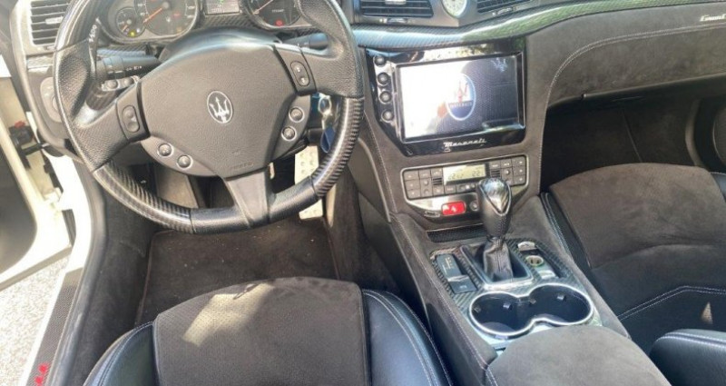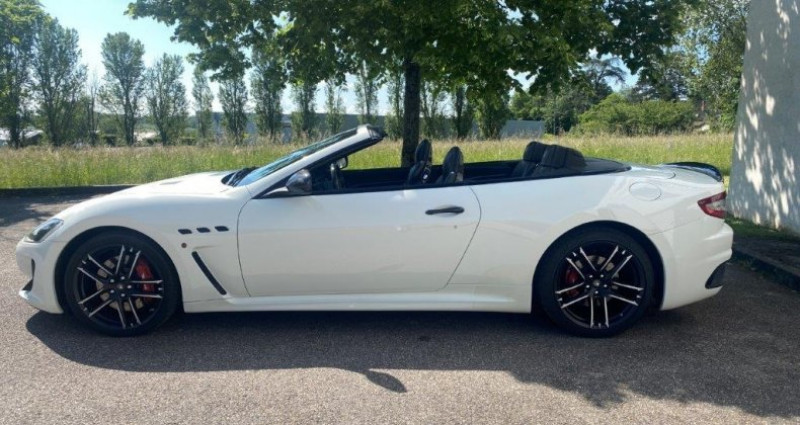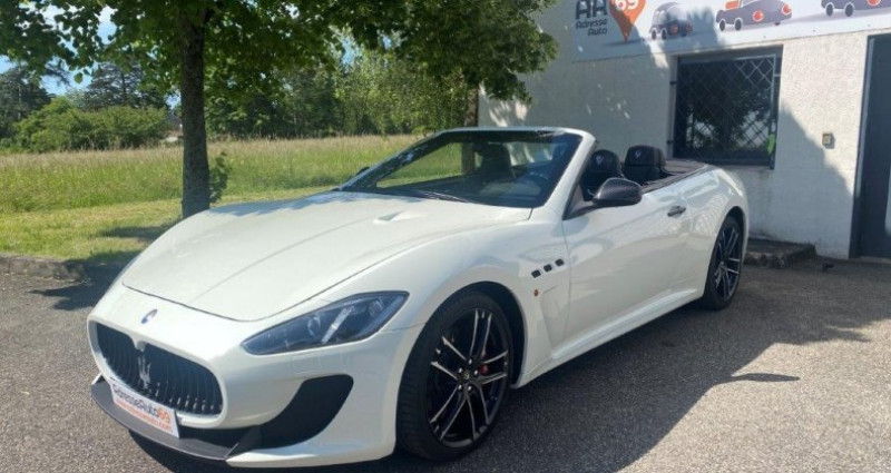 Cylindrée : 4700 cm3 Nb. Vitesse : 6 La Maserati GranCabrio MC Stradale est une version haute performance et découvrable du coupé GranTurismo MC Stradale de Maserati. Elle incarne l?alliance entre un design élégant, des performances sportives et une expérience de conduite à ciel ouvert. Du point de vue du design, la GranCabrio MC Stradale reprend les lignes dynamiques et athlétiques du GranTurismo, avec des éléments distinctifs qui lui confèrent une allure plus agressive et sportive. La calandre emblématique de Maserati est mise en valeur, et les prises d?air redessinées, les jupes latérales prononcées et le diffuseur arrière contribuent à améliorer l?aérodynamisme et l?apparence musclée de la voiture- Phase 2 model 2014 V8 Ferrari - ligne d'échappement Ferrari 460cv - Pack full carbone intérieur et extérieur (retro, poignés, becquet, dossier de siege... en carbone) - Etrier de frein rouge anodisé (option très rare) - couleur blanche bianco eldoraro, - Intérieur noir cuir- alcantara - Camera de stationnement avant et arrière - Système GPS multimedia android 10 9 pouces neuf - Filet anti remous avec sac de transport Maserati d'origine - Housse de protection Maserati d'origine - Carnet d'entretien ultra complet UNIQUEMENT suivi Maserati suivi exceptionnel malgré le faible kilométrage seulement 13000km - Coté entretien tout est à jours, et meme plus ! - Batterie récente (décembre dernier) - 4 pneus quasi neuf Monte d'origine Pirelli p zero de juin 2022 - parallélisme fait au remplacement des pneus - Très grosse révision complete fait en juin 2022 également (facture Maserati) - Les joints de cache culbuteur ont été fait en préventif (maladie sur ces moteurs) - Carte grise française avec double des clefs et carnets d'entretien tamponné et à jours - Intérieur absolument irréprochable aucun accroc aucune trace (seul quelque boutons sont collant comme beaucoup d'italienne) - Les 4 jantes parfaite aucune trace pas d'accros aucun frottement - Carrosserie idem Acheté chez Maserati Annecy - Carnet à jour - Facture d'entretien,