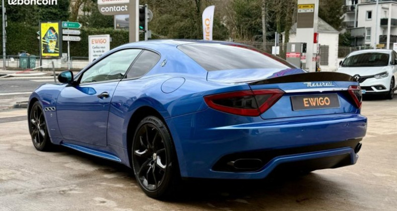 Maserati Granturismo (2) 4.7L V8 460 SPORT + CARBONE + CERAMIQUE berline, bleu, 38 cv, 2 portes, première mise en circulation le 08/05/2014. - NOS SERVICES ET PRESTATIONS COMPLÉMENTAIRES - - Visite virtuelle : avant de vous déplacer, visualisez votre futur véhicule sous toutes ses coutures . Contactez-nous pour en voir plus ! - Extension de garantie jusqu'à 60 mois. - Solutions de Financement de 12 à 84 mois. - Livraison dans toute la France métropolitaine (sur devis). - Reprise possible de votre ancien véhicule. - Les informations délivrées par cette annonce sont non contractuelles et données à titre indicatif. Packs disponibles (véhicules éligibles au Label) - Pack Clés en Main - 691 € TTC(¹)(²) Démarches (hors carte grise) | 1/4 de carburant | Nettoyage First | Garantie 6 mois | Label inclus? - Pack Sérénité - 891 € TTC(¹)(²)- Démarches (hors carte grise) | 1/2 de carburant | Nettoyage Confort | Garantie 12 mois | Label inclus? - Pack Prestige - 1.091 € TTC(¹)(²) Démarches (hors carte grise) | Plein complet | Nettoyage Prestige | Garantie 12 mois | Label inclus? + Surprise du chef - (¹) Les véhicules non éligibles au Label bénéficient de tarifs préférentiels. Veuillez contacter votre conseiller pour obtenir les conditions tarifaires applicables. (²) Tarif pour les véhicules deux roues motrices dont la valeur de vente est inférieure à 60 000 € TTC. - - Accès transport en commun depuis la gare Nancy centre / Possibilité de venir vous chercher à la gare de Nancy centre - Véhicule visible sur rendez-vous - Du Lundi au Samedi de 9h à 18h30 - EWIGO NANCY - 144 rue du faubourg des trois maisons - 54000 NANCY - Tel : [Coordonnées masquées] 4 places OPTIONS ET ÉQUIPEMENTS : Audio - Télécommunications : - Bluetooth - CD - GPS - prise audio auxiliaire Conduite : - BVA - Boîte de vitesse séquentielle - Choix du mode de conduite - Essuies glaces automatiques - Frein de parking électrique - allumage automatique des feux - détecteur de pluie - limiteur de vitesse - palettes au volant - régulateur de vitesse - sièges sport Couleur : - Peinture métallisée Extérieur : - Echappement à double sortie - Aide au parking AR - jantes : aluminium - rétroviseurs électriques - système d'aide au stationnement Intérieur : - Accoudoir central AV - Accoudoir central AV +AR - Banquette 1/2 - 1/2 - Miroir de courtoisie chauffeur éclairé - Miroir de courtoisie passager éclairé - Pack carbone - Pédalier sport - Sièges AV à mémoire - Sièges AV électriques - Sièges baquets - Sièges à mémoire - Volant alu/cuir - Volant réglable électriquement - Porte gobelet avant - accoudoir central - accoudoir central arrière - climatisation : automatique - climatisation multi zone - fermeture centralisée - non fumeur - ordinateur de bord - rétroviseur interieur electrochrome - sièges chauffants - vitres surteintées - vitres électriques - volant réglable hauteur - volant réglable profondeur - volant sport Pack : - Boîte de vitesse automatique - Immatriculation Française - Mode sport - Pack extérieur - Pack intérieur - GPS couleur - nombre de rapports : 6 vitesses - volant multifonctions - volant réglable Sellerie : - Intérieur cuir alcantara Sécurité : - Airbags - Contrôle de pression des pneus - ABS - Aide au demarrage en pente - ESP - fixations ISOFIX Autres équipements et informations : - (2E GENERATION) - CRIT'AIR 1 - Carnet d'entretien - Double des clés - Entretien constructeur - Factures d'entretien - Gran Turismo - II (2E GENERATION) - Mode normal - Pas de Malus - Phares AV de jour - SURPIQURES BLANCHES - Usure embrayage 32% - Classe Crit'air : 1 - MP3 - Puissance kilowatt : 338 kw - dimension des jantes : 20 pouces - puissance réelle : 460 ch - émission CO2 : 360 g/km - état : excellent Référence annonce : d141743