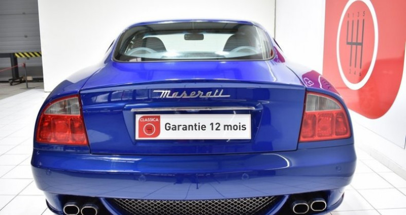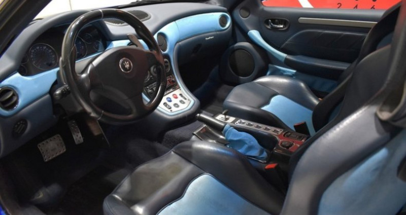CONDUITE : à gauche CARTE GRISE : Normale NB PLACES : 4 NB CYL. : 8 en V PNEUMATIQUES : Usure Av 20% + Ar Neufs * GARANTIE 12 MOIS incluse * REPRISES et LIVRAISON possibles * Frais de mise à la route en sus : 690 € TTC (1/4 de carburant, passage contrôle technique, préparation intérieure et extérieure) * Service « carte grise » et « carte grise collection » (dossier FFVE inclus) MASERATI Gransport (2005-2007) 2 572 ex. produits Origine Allemagne Carnet d'entretien MASERATI d'origine Tous documents et manuels MASERATI d'origine Même propriétaire depuis 2009 Important dossier de factures depuis 2009 (total:35.880 EUR.) Suivi centre MASERATI et spécialiste de la marque Matching color extérieur : « Blu Mediterraneo» Matching color intérieur : « Blu » Boite séquentielle F1 Cambiocorsa Usure embrayage 27% mesurée en centre MASERATI à 92.075 km. Dernier entretien réalisé auprès d'un spécialiste de la marque en 2024 à 100.866km (facture :1.891 EUR.) Sorties d'échappement chromées Becquet de coffre Aide au stationnement arrière Phares au xénon. 4 jantes d'origine « Trofeo » en 19'' coloris « Grigio » 2 pneumatiques avant PIRELLI PZéro 2 pneumatiques arrière neufs à la livraison Étriers de frein « Rosso corsa » Sellerie en cuir et suédine coloris « Blu » Sièges sport électriques à mémoire de position Sièges chauffants Gaufrage MASERATI sur les appuie têtes Tableau de bord en suédine coloris «Azzuro chiaro» Volant F1 en carbone et cuir coloris «Nero » Climatisation automatique Régulateur de vitesse Horloge MASERATI Console centrale en carbone Rétroviseurs électriques rabattables Radio cd INFOTAINMENT Pédalier aluminium siglé MASERATI Seuils de porte aluminium siglés MASERATI Grandsport Ciel de toit en suédine coloris «Azzuro chiaro » Moquettes d'origine coloris « Blu» Sur tapis sur mesure Coupe batterie Prise 12 volts Kit de gonflage Alarme Historique du modèle : Après le succès de la 3200 GT qui mit un terme à des années d'errance en terme de style et de fiabilité, MASERATI rejoint le groupe FERRARI pour bénéficier du savoir faire maison en terme de qualité et de sportivité. Fort logiquement, la nouvelle 4200 GT sera la première à recevoir un V8 tout aluminium issu des fonderies de la scuderia. En 2004, il est temps pour MASERATI de remettre son coupé sportif au niveau de la concurrence: FERRARI F430, PORSCHE 911 type 997 et CHEVROLET Corvette C6. La marque de Modène présente alors la Gransport qui sera équipée d'éléments spécifiques : optimisation moteur, châssis surbaissé, suspensions pilotées « Skyhook » upgradées, boucliers, spoilers, bas de caisses, prises d'air plus importantes, inserts carbone et jantes 19? « Trofeo ». Carrosserie / Extérieur : Le modèle présenté ici est une MASERATI Gransport d'Avril 2005 dans son coloris «Blu Mediterraneo» d'origine (matching color). La peinture présente une excellente brillance et sa teinte est uniforme. Après un lustrage pro réalisé à l'orbitale, nous avons noté un léger gravillonnage de la face avant et un défaut de vernis sur le capot moteur ainsi que quelques éclats de peinture sur l'arête de porte conducteur. Le pare choc avant est bon état de présentation, nous avons relevé une trace de frottement sur sa partie inférieur côté passager. Le pare choc arrière est en excellent état notamment grâce à l'option aide au stationnement arrière. Les 4 jantes « Trofeo » d'origine en 19'' coloris « Blu » sont en bon état malgré quelques traces de frottement. Les pneumatiques avant PIRELLI PZéro affichent une usure de 20%. Les pneumatiques arrière seront remplacés à neuf en amont de la livraison. Cet exemplaire a conservé sa trousse à outils d'origine ainsi que sa cartouche anti-crevaison. Parmi les équipements et options carrosserie / extérieur intéressants présents sur ce modèle, nous avons relevé: Les 4 jantes « Trofeo », le becquet arrière, les bas de caisse, l'aide au stationnement arrière ainsi que les phares au xénon. Habitacle : L'intérieur en cuir et suédine coloris « Blu » (matching color) a conservé sa stricte configuration d'origine et apparaît en excellent état de présentation. Les sièges sport en cuir et suédine coloris «Blu » réglables électriquement sont en excellent état malgré la présence d'une légère patine d'usage coté conducteur. Cet exemplaire est équipé de l'option appuie têtes gaufrés MASERATI. Les contre portes assorties à la sellerie sont en très bon état, sans trace d'accès à bord ni distension. Le tableau de bord en suédine coloris «Azzuro chiaro » ainsi que la casquette coloris «Blu » sont en excellent état. L'ensemble de l'instrumentation de bord d'origine ainsi que l' horloge MASERATI sont parfaitement fonctionnels. Le volant F1 d'origine en carbone et cuir coloris « Nero » est également en excellent état. Les palettes de la boite F1 présentent une très légère usure aux extrémités. La version Gransport est équipée en série du pédalier aluminium MASERATI ainsi que du start engine : démarrage par bouton poussoir. La climatisation d'origine est également parfaitement fonctionnelle. La radio d'origine à été remplacée par un lecteur CD INFOTAINMENT plus récent et parfaitement fonctionnel. Les éléments en carbone ne présentent aucune trace d'usure ni rayure. Les moquettes d'origine coloris «Blu » sont protégées par des sur-tapis sur mesure. Les seuils de porte en aluminium siglés MASERATI Gransport sont en excellent état. Le ciel de toit en suédine coloris «Azzuro chiaro » est bon état. Parmi les options et équipements intérieur dont cet exemplaire est doté, nous avons noté: Les sièges sport cuir et suédine « Blu » réglables électriquement, les appuie têtes gaufrés MASERATI, les rétroviseurs électriques rabattables, le volant carbone et cuir, la console centrale carbone, le pédalier aluminium MASERATI, le start 