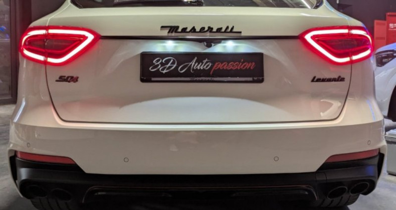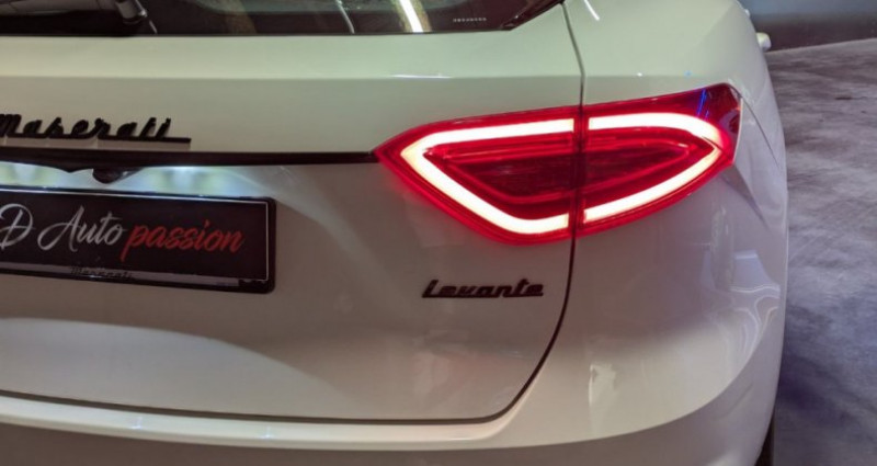 3D AUTO PASSION spécialisé dans la vente de véhicules premium et sportifs vous présente à la vente ce sublime MASERATI LEVANTE S Q4 V6 bi- turbos 430ch , 33cv, en boîte automatique 7 rapport, de 12/2019 dans cette coloris Bianco Alpi (peinture perlée vernie 3 couches) VÉHICULE FRANÇAIS ENTRETIEN EXCLUSIF MASERATI ETAT NEUF AUCUN FRAIS À PREVOIR ÉQUIPEMENTS EXTÉRIEUR : Phares avant bi-xenon adaptatifs avec feux de jour led Feux arrière led Lave phares avant Jantes alu noir brillant 21 pouces modèle ANTEO Étriers de freins rouge Bouclier avant et arrière couleur caisse Shadow Line complet ( contour de votre et logo noir brillant) Calandre noire brillante Coffre électrique avec fermeture à distance Échappement à doubles sorties noires ( à valves) Becquet arrière Détecteur avant / arrière Caméra de recul avec affichage 360 + affichage écran MTC Toit ouvrant panoramique Vitres arrières thermique et acoustique Ouverture / fermeture sans clefs ÉQUIPEMENTS INTÉRIEURS : Sellerie en cuir noir avec surpiqûres blanche et logo blanc Maserati brodés sur les appuis têtes avant / arrière Sièges avant chauffants / ventilés Sièges avant électriques à mémoire Volant sport en cuir chauffant Palettes au volant Commande vocale Pack carbone intérieur ( insert carbone console centrale , tableau de bord , portes) Écran central couleur tactile Gps / bluetooth / Android auto / apple car play Climatisation quadri zones Régulateur / limiteur de vitesse Système audio premium HARMAN KARDON (10 hauts parleurs) Pare soleil électrique sur les vitres arrières Seuil de porte acier et illuminé Éclairage logo Maserati au sol lors des ouvertures de portes Prise AUX / USB Pédalier alu sport SÉCURITÉ : front assist Détecteur de pression de pneus Esp Différentiel à glissement limité Aide au démarrage en côte Airbags conducteur / passager / latéraux