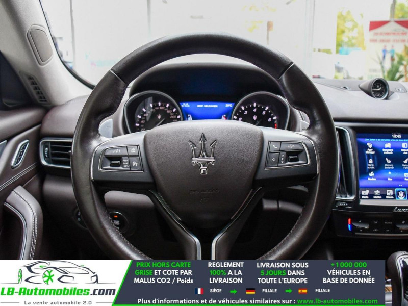 Référence : 1144815 Vos Avantages chez LB-AUTOMOBILES.com / Prix affiché TTC Livré hors carte grise / Livraison sous 10 jours dans toute la France hors 31 / Pas d?avance de frais paiement du véhicule 100% à la livraison par virement. Maserati Levante Neuf remisée, Maserati Levante Occasion Toulouse Beaupuy 31850, Maserati Levante Véhicule sorti de réseau collaborateur, Maserati Levante import, Maserati Levante importateur, Maserati Levante Livraison possible dans toute la France sous 5 jours, Maserati Levante, Maserati Levante Location Option Achat, Maserati Levante LLD, Maserati Levante Longue Durée, Maserati Levante TVA récupérable. Possibilité d'extension de garantie 12, 24,36 mois, Pour tout autres voitures import neufs ou occasions collaborateur fortement remisée, Mandataire Audi, Mandataire BMW, Mandataire Volkswagen, Mandataire Mercedes, Mandataire Peugeot Espagne, Mandataire Renault Espagne, Porsche import, Mandataire Citroën Espagne, Mandataire Seat Espagne, n'hésitez pas à nous contacter. « Sous réserve de vente préalable et erreur de saisie » Principaux équipements : - 4x4 - ABS - Accoudoir - Android Auto - Antidémarrage - Apple CarPlay - Assistance de démarrage en côte - Bluetooth - Capteur de lumière - Capteur de pluie - Carnet d'entretien - Commande vocale - Contrôle de la pression des pneus - Direction assistée - Écran tactile - ESP - Fermeture centralisée - Feux de jour LED - Garantie - GPS - Grille de protection pour coffre - Hayon électrique - Isofix - Jantes alliage - Kit de réparation d'urgence des pneus - Kit mains libres - Ordinateur de bord - Phare antibrouillard - Phares bi-xénon - Port USB - Radio DAB - Réglage électrique des sièges - Régulateur de vitesse - Rétroviseur extérieur électrique - Rétroviseur intérieur anti-éblouissement automatique - Sièges chauffants - Sièges sport - Suspension pneumatique - Système antipatinage - Système Stop & Start - Trappe à skis - Tuner/radio - Véhicule non-fumeur - Verrouillage centralisé sans clé - Vitres électriques - Volant en cuir - Volant multifonction