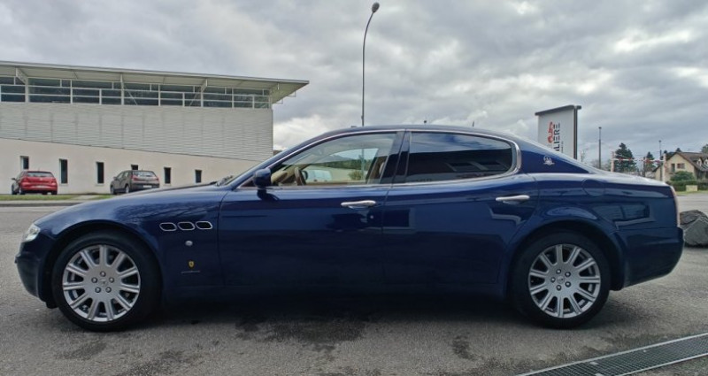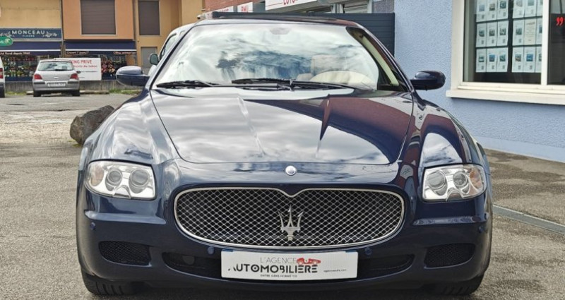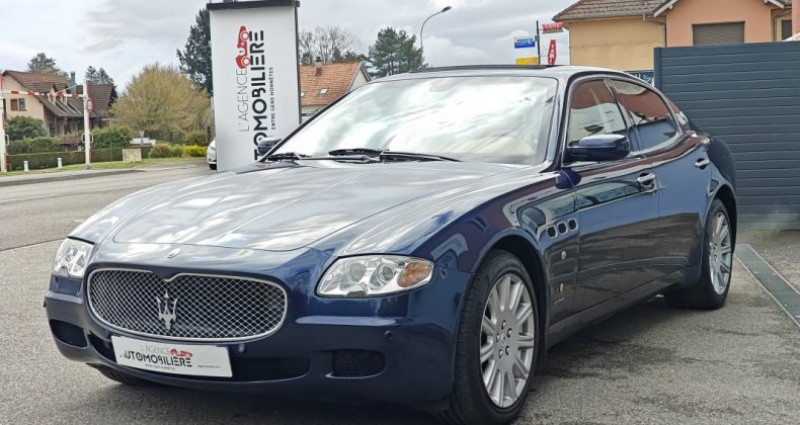 Maserati Quattroporte 4.2 V8 - 2006 - Élégance et performance italienne ****************************************************** Nous vous proposons cette magnifique Maserati Quattroporte équipée du mythique moteur V8 4.2L d’origine Ferrari, alliant luxe, sportivité et sonorité exceptionnelle avec son carnet d'entretien complet Maserati. ****************************************************** Année : 2006 Moteur : V8 4.2L Boîte de vitesses : Automatique Kilométrage : 225 000 KMS Puissance : 400 CH Carburant : Essence Couleur : Bleu Intérieur cuir haut de gamme ****************************************************** Sellerie cuir premium Sièges électriques Climatisation automatique Système audio de qualité Jantes alliage Radar de stationnement ****************************************************** Sonorité exceptionnelle du V8 Ligne élégante et intemporelle Véritable berline de prestige ****************************************************** Véhicule visible sur rendez-vous Financement possible Garantie 12 mois Extension de garantie possible jusqu'à 60 mois Frais de mise en main 340€ ****************************************************** Livraison possible dans toute la France sur devis ****************************************************** ==================== EQUIPEMENTS ==================== - ABS - Accoudoir - Aide au démarrage en côte - Airbag(s) - Allumage automatique des feux - Anti-brouillards - Châssis sport - Climatisation automatique bi-zone - Climatisation Quadri-zone - Direction assistée - Détecteur de pluie - Détecteur pression des pneus - ESP - Fermeture centralisée à distance - GPS - Intérieur cuir - Jantes aluminium - Lecteur CD - Ordinateur de bord - Palettes au volant - Pare-soleil arrière - Peinture métallisée - Radar de stationnement avant et arrière - Rétroviseur intérieur jour nuit - Sièges arrières chauffants - Sièges chauffants - Sièges massant - Sièges sport - Sièges ventilés - Sièges à mémoire - Sièges électriques - Sièges électriques Arrières - Toit ouvrant électrique - Téléphone - Vitres surteintées - Vitres électriques avant et arrière - Volant cuir - Volant multifonctions - Volant sport Nb. Places : 5