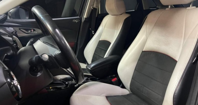 Mazda CX-3 2.0 SKYACTIV-G 120 DYNAMIQUE 2WD BVA + 1ÈRE MAIN crossover, suv, blanc, 7 cv, 5 portes, première mise en circulation le 11/01/2017, garantie 6 mois. - NOS SERVICES ET PRESTATIONS COMPLÉMENTAIRES - - Visite virtuelle : avant de vous déplacer, visualisez votre futur véhicule sous toutes ses coutures . Contactez-nous pour en voir plus ! - Extension de garantie jusqu'à 60 mois. - Solutions de Financement de 12 à 84 mois. - Livraison dans toute la France métropolitaine (sur devis). - Reprise possible de votre ancien véhicule. - Les informations délivrées par cette annonce sont non contractuelles et données à titre indicatif. Packs disponibles (véhicules éligibles au Label) - Pack Clés en Main - 691 € TTC(¹)(²) Démarches (hors carte grise) | 1/4 de carburant | Nettoyage First | Garantie 6 mois | Label inclus? - Pack Sérénité - 891 € TTC(¹)(²) Démarches (hors carte grise) | 1/2 de carburant | Nettoyage Confort | Garantie 12 mois | Label inclus? - Pack Prestige - 1.091 € TTC(¹)(²) Démarches (hors carte grise) | Plein complet | Nettoyage Prestige | Garantie 12 mois | Label inclus? + Surprise du chef - (¹) Les véhicules non éligibles au Label bénéficient de tarifs préférentiels. Veuillez contacter votre conseiller pour obtenir les conditions tarifaires applicables. (²) Tarif pour les véhicules deux roues motrices dont la valeur de vente est inférieure à 60 000 € TTC. - Véhicule visible sur rendez vous 5 places OPTIONS ET ÉQUIPEMENTS : Audio - Télécommunications : - Système audio BOSE - Bluetooth - CD - GPS - Prise audio usb - commandes vocales - lecteur carte SD - radio numérique - système de navigation Conduite : - Essuies glaces automatiques - Line assist - Accès et démarrage sans clé - Stop & Start - affichage tête haute - allumage automatique des feux - clé mains-libres - démarrage sans clé - détecteur de pluie - limiteur de vitesse - palettes au volant Extérieur : - Capteurs d'aide au stationnement arrière - Phares AV de jour à LED - Rétroviseurs latéraux électriques - caméra de recul - jantes : aluminium - jantes alliage - phares à LED - rétroviseurs rabattables - système d'aide au stationnement Intérieur : - Volant alu/cuir - accoudoir central - banquette 1/3 - 2/3 - climatisation : manuelle - climatisation manuelle - direction assistée - non fumeur - ordinateur de bord - sièges chauffants - vitres électriques - volant réglable hauteur - volant réglable profondeur Pack : - Boîte de vitesse automatique - Mode sport - Pneus été - Sièges arrières 1/3 - 2/3 - GPS couleur - détecteur de lumière - nombre de rapports : 6 vitesses - régulateur de distance - volant multifonctions - volant réglable Sellerie : - Intérieur cuir alcantara Sécurité : - Alerte franchissement de lignes - Contrôle de pression des pneus - avertisseur d'angle mort - phares antibrouillard Autres équipements et informations : - Mode normal - Classe Crit'air : 1 - GPS tactile - Puissance kilowatt : 88 kw - USB - dimension des jantes : 18 pouces - puissance réelle : 120 ch - émission CO2 : 136 g/km Référence annonce : d155204