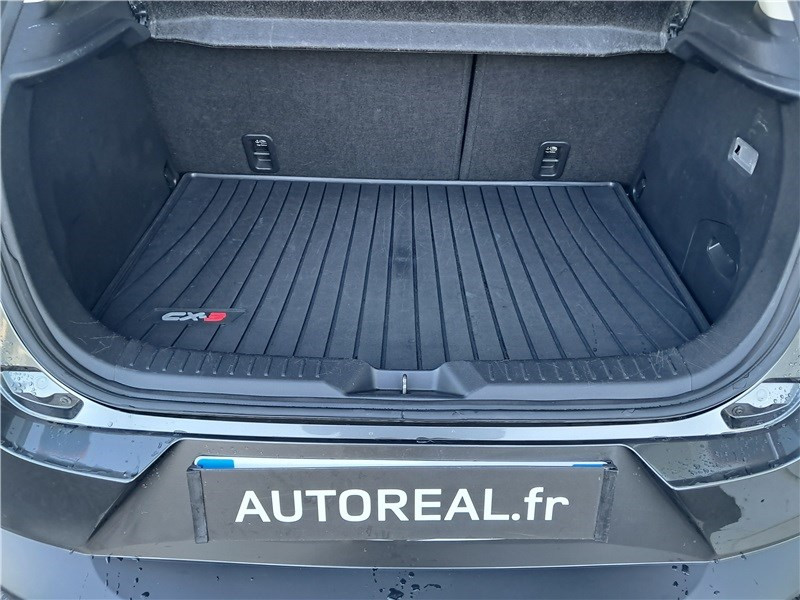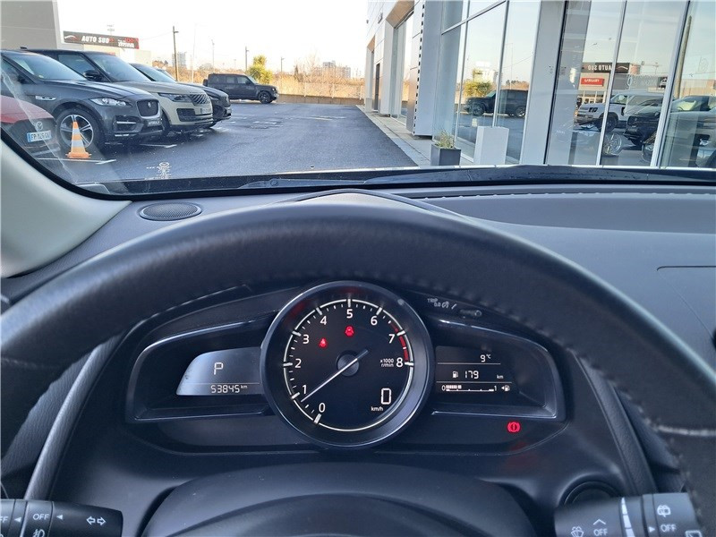 Accoudoirs AV et AR et repose-genoux rouge foncé avec surpiqûres / Aide au freinage intelligent en mode urbain (SCBS avancé) avec détection des piétons / Antenne type "Requin" / Bouton de sélection du mode de conduite / Cache-bagages / Casquette de tableau de bord spécifique effet cuir avec surpiqûres / Démarrage avec bouton "start" / Fonction "Coming/Leaving Home" / Freins à disque AV et AR / Garnitures extérieures latérales avec moulures brillantes / Grille de calandre Argent / Ordinateur de bord avec alarme de vitesse / Ouverture/fermeture des portes à télécommande / Ouverture/fermeture intelligente des portes / Pare-soleil avec miroir de courtoisie côté conducteur et passager et range-ticket côté conducteur / Poignées de porte extérieures couleur carrosserie / Reconnaissance active d'obstacles en marche AR (RCTA) / Rétroviseurs extérieurs électriques et chauffants couleur carrosserie / Sièges Tissu noir avec assise/dossier tissu gris foncé (et passepoils gris) / Système audio avec radio AM/FM, lecteur CD/MP3 6HP, prises AUX et 2 ports USB / Système Bluetooth avec commandes au volant / Système d'antiblocage des roues au freinage (ABS) / Système "G-Vectoring Control" (GVC) / Système MZD Connect avec écran couleur 7", interface à commandes multiples HMI et système de / Vitres électriques AV et AR avec commande à impulsion pour la vitre conducteur